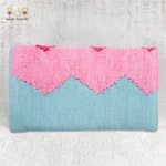 The pink threads represent compassion, warmth, and creativity, while the blue tones evoke clarity, calmness, and depth. Together, they create a sense of emotional harmony — a balance between heart and mind. Furthermore, the handwoven texture reflects human connection and mindfulness, making this clutch more than just an accessory; it’s a tangible reminder that beauty can be gentle, and art can soothe.