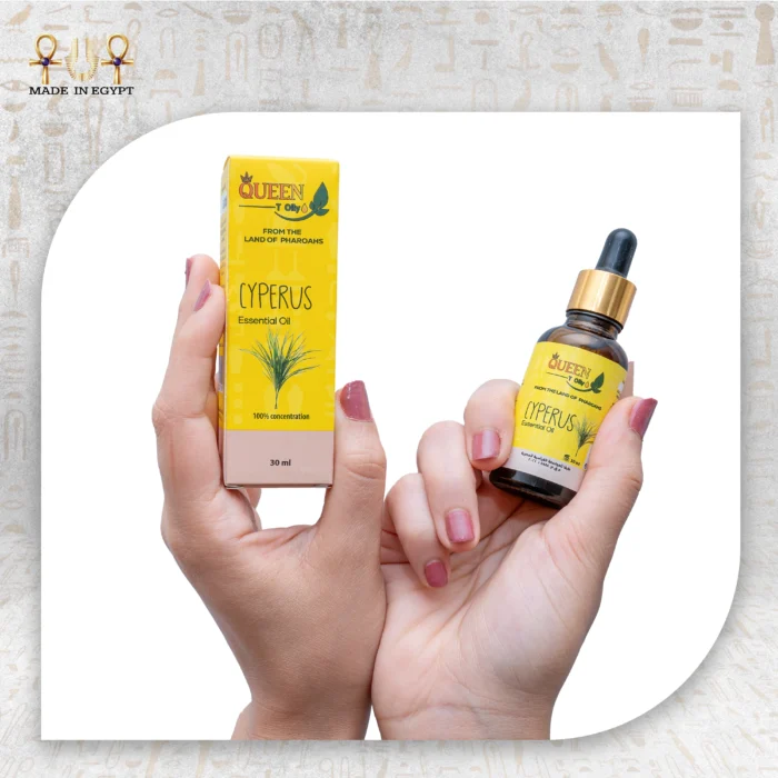 Cyperus oil comes in a practical 30 ml bottle that is easy to use and store. Packaged in an elegant yellow box with the Queen logo and the phrase “From the Land of Pharaohs,” it combines functionality with a touch of luxury. Whether applied after shaving, waxing, or as part of your daily skincare routine, this oil delivers visible results and enhances the beauty of your skin.