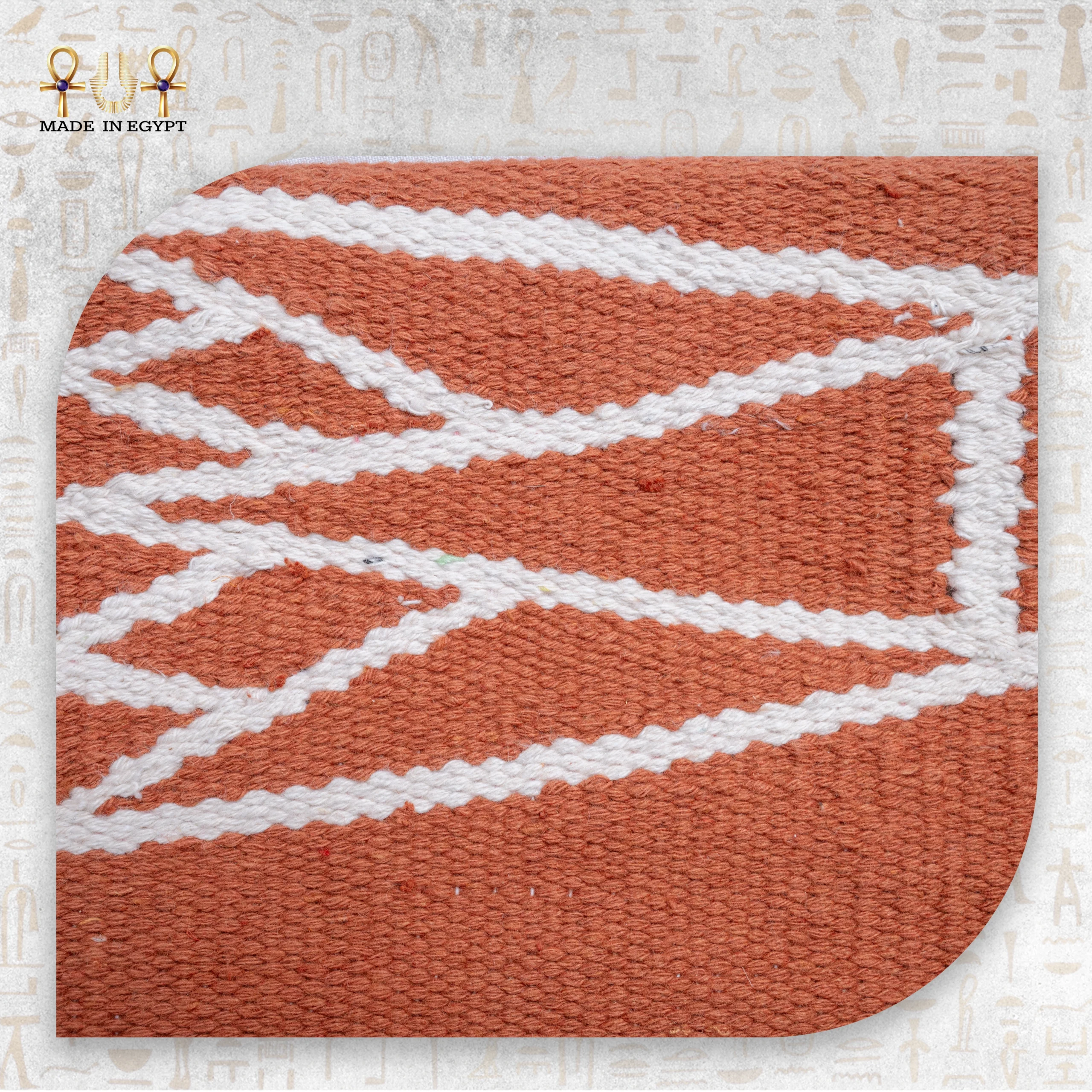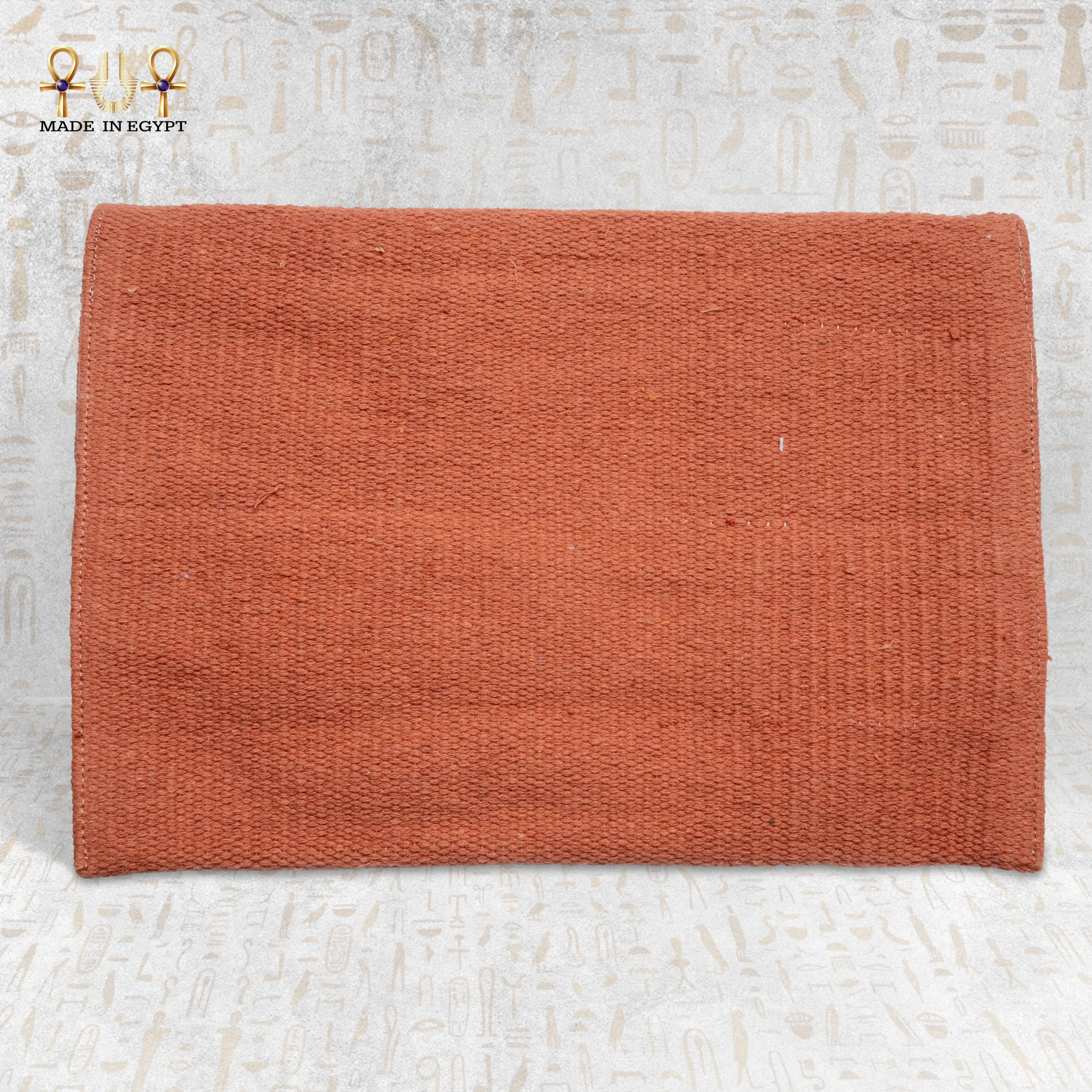 Each Dawn Bloom Clutch is meticulously crafted by Egyptian artisans using traditional weaving techniques. The earthy terracotta tone represents the grounding energy of the land, while the white floral motif radiates purity and calm. Moreover, every fiber carries intention — patience, care, and a connection to the timeless art of Egyptian handweaving. The natural cotton texture feels soft yet durable, embodying both comfort and resilience.