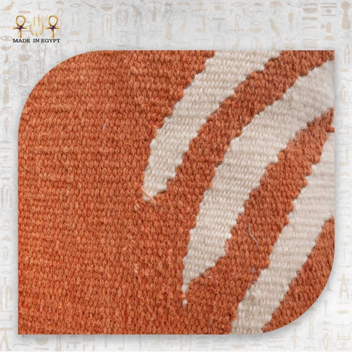 Each Desert Sunset Cushion is handwoven by Egyptian artisans who merge traditional weaving techniques with contemporary design sensibilities. Using 100% natural cotton threads, they craft a rich terracotta base enhanced with minimal beige geometric patterns. These subtle details create a sense of movement and harmony, symbolizing the shifting sands and glowing skies of the Egyptian desert. Moreover, the refined handwoven texture offers both softness and durability, ensuring comfort and longevity.