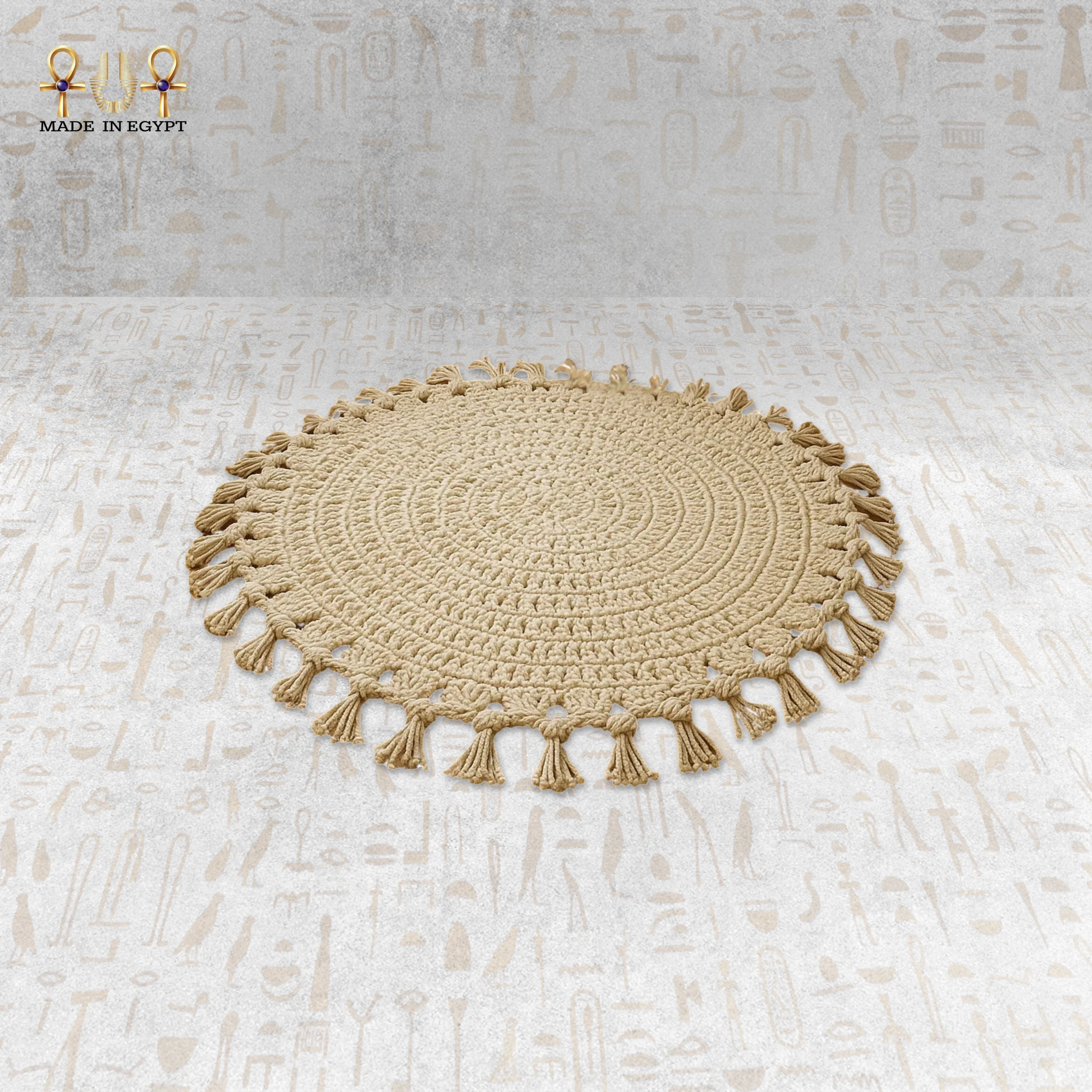 Carefully crocheted by skilled Egyptian artisans, each stitch reflects patience, heritage, and artistry. Its spiral design radiates balance and visual harmony, while the handcrafted tassels enhance its playful boho-chic aesthetic. The result is a piece that’s as functional as it is beautiful.