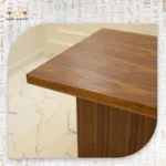 The frame is made from high-quality fiberboard panels, which are finished with a natural walnut veneer, giving the desk a luxurious appearance. The beechwood edging adds both structural integrity and elegance to the design. This combination of materials ensures that the desk is not only aesthetically pleasing but also durable for long-term use.