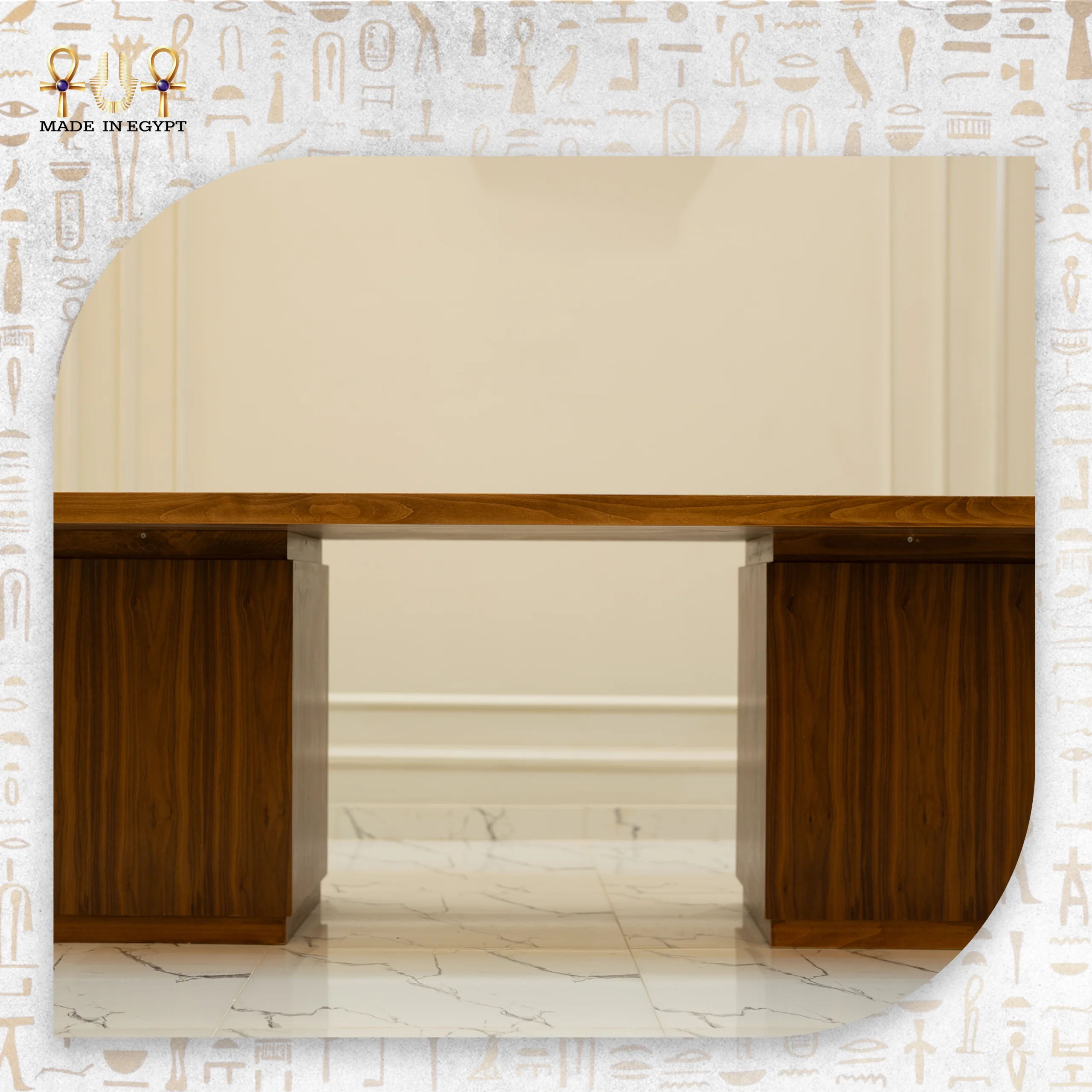 This spacious and elegant executive desk is designed for both functionality and sophistication. Made from fiberboard panels finished with natural walnut veneer and accented with solid beechwood edging, it combines durability with a premium aesthetic, making it the perfect choice for professional environments. The desk provides ample surface area for work while also offering practical storage solutions to keep your workspace organized.