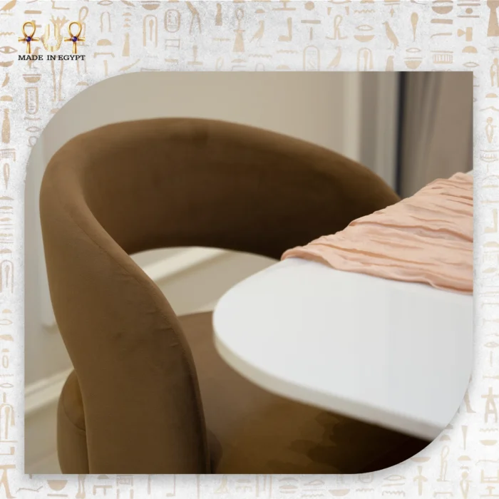 Each element reflects exceptional attention to detail. The chairs feature soft, high-quality fabric upholstery, providing both support and comfort. Their curved backrests and side cushioning ensure ergonomic seating for long hours, making every meal enjoyable.