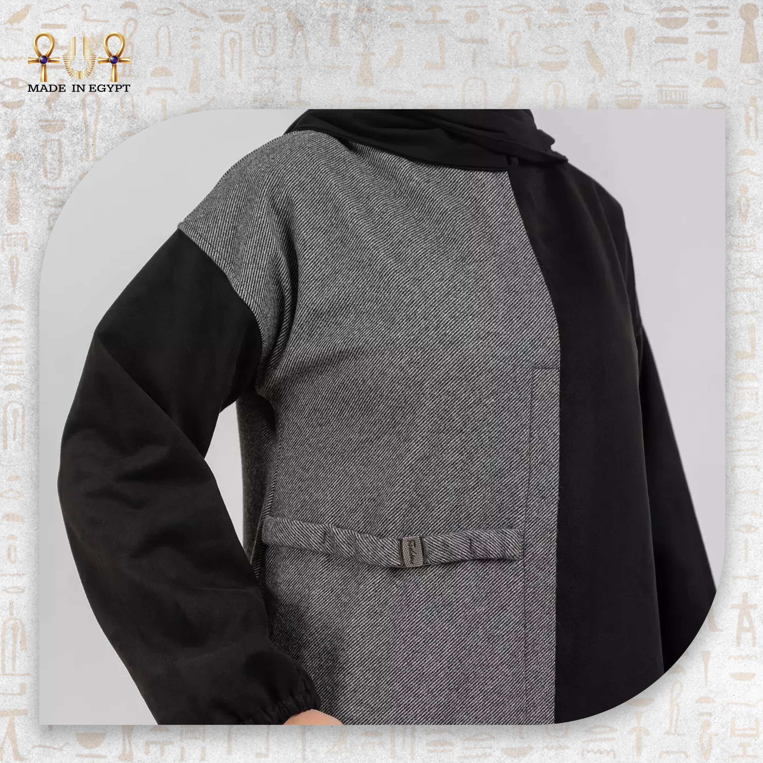 This piece uses high-quality materials that blend wool and suede. The fabric feels soft and provides warmth, which makes it ideal for mild to cooler weather. The contrast between textures and colors adds a modern and stylish effect. It also gives the design a distinctive character without making it look too bold.