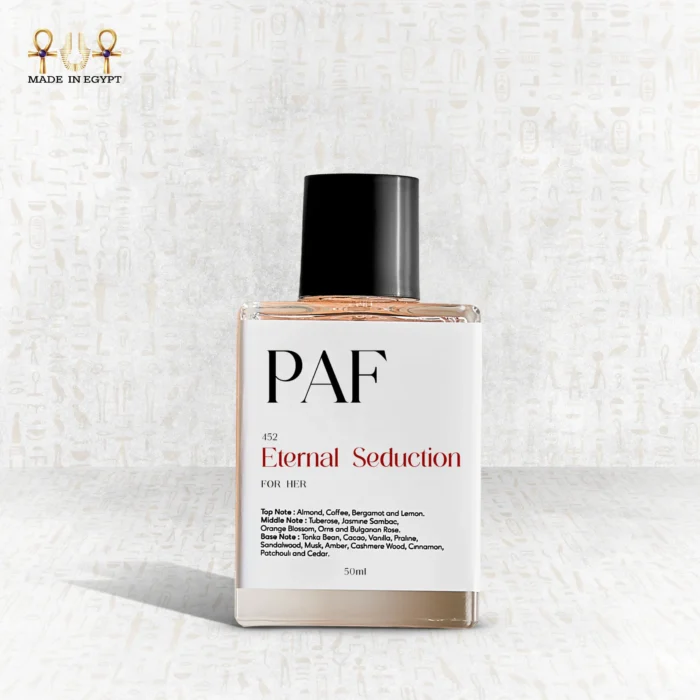Finally, the fragrance settles into a warm and sophisticated base. Cocoa, vanilla, and praline bring sweet indulgence, wrapping around you like a luxurious shawl. Sandalwood and cashmere wood layer the scent with depth and elegance. Musk and amber add mystery, while patchouli and cedarwood anchor the blend with strength. This finale ensures Eternal Seduction leaves a signature that lingers long after you depart.