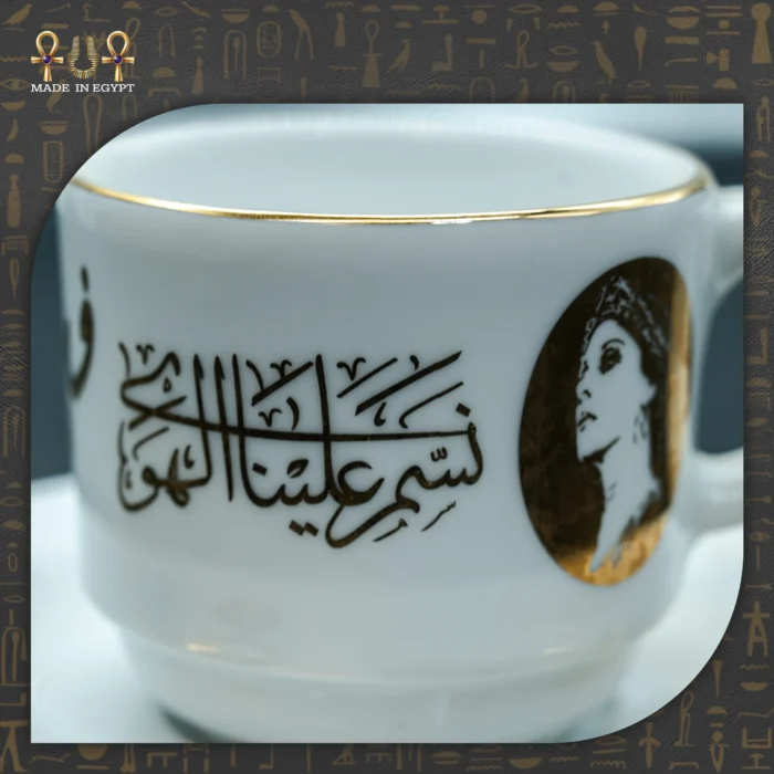 Fairouz Cup – The Fairouz Cup is a luxurious porcelain coffee set celebrating the legendary voice of Fairuz. This elegant set includes six finely crafted cups and six matching saucers. Each piece is made from high-quality porcelain with a smooth, glossy finish. A protective glaze keeps the artwork vibrant and prevents peeling.