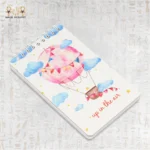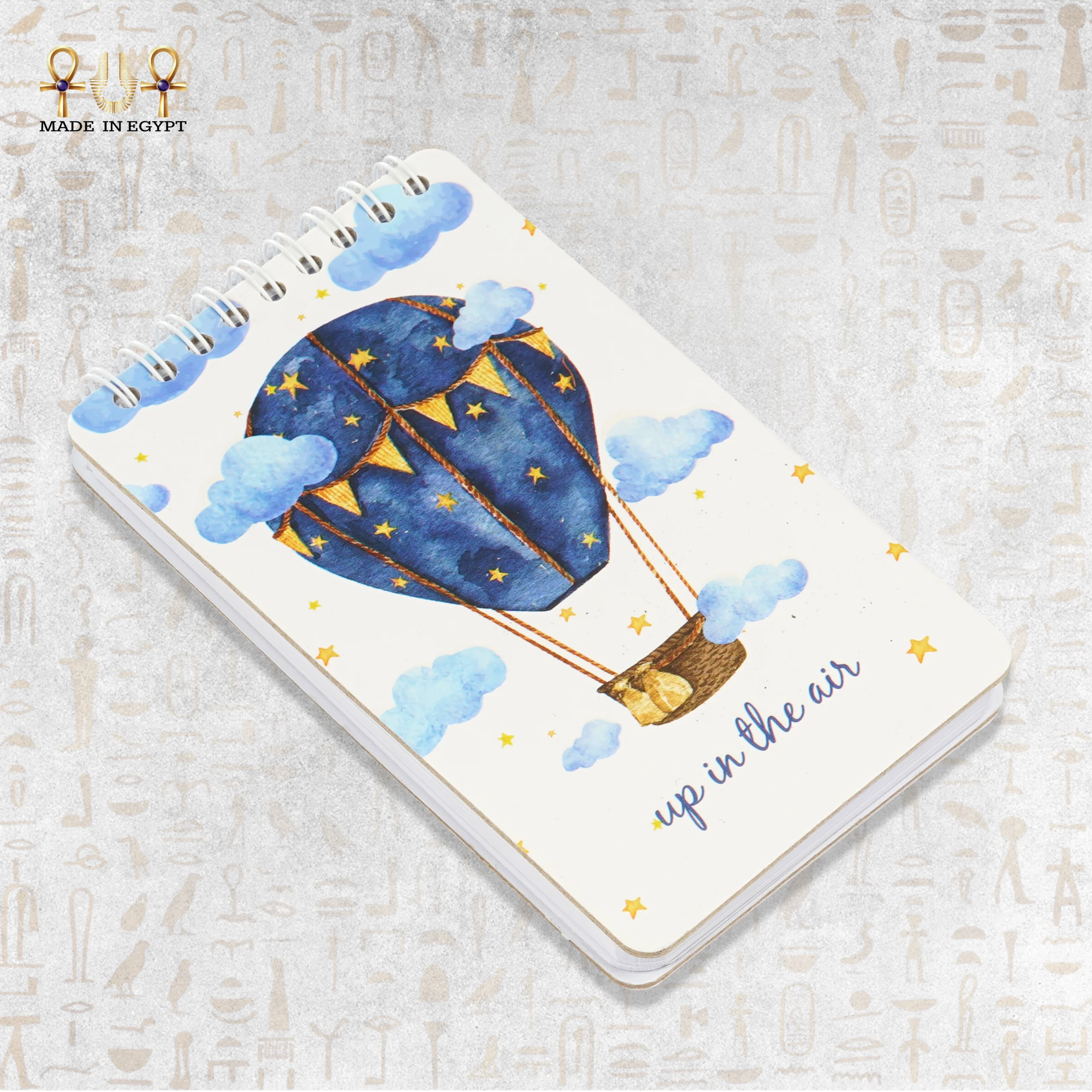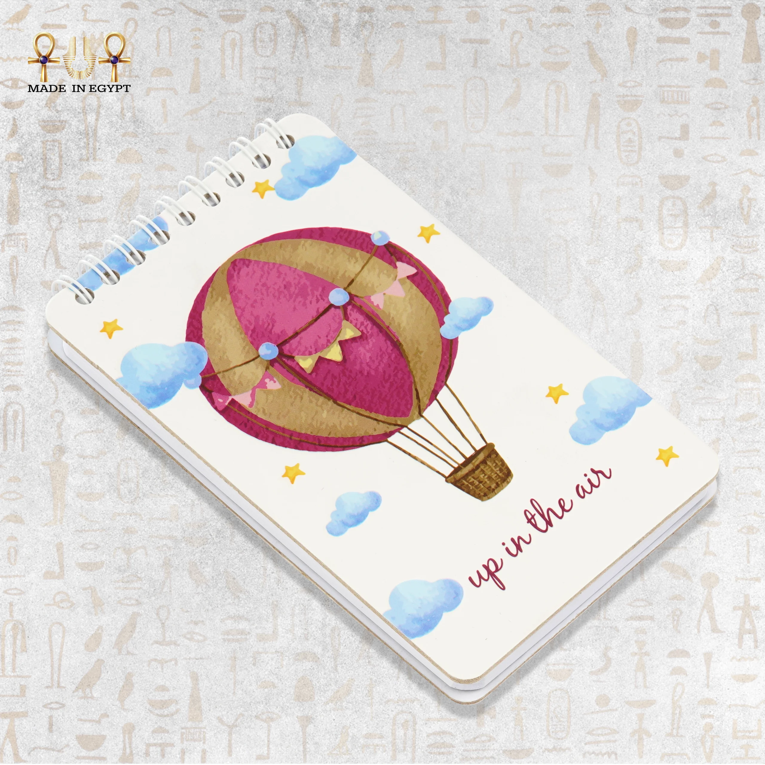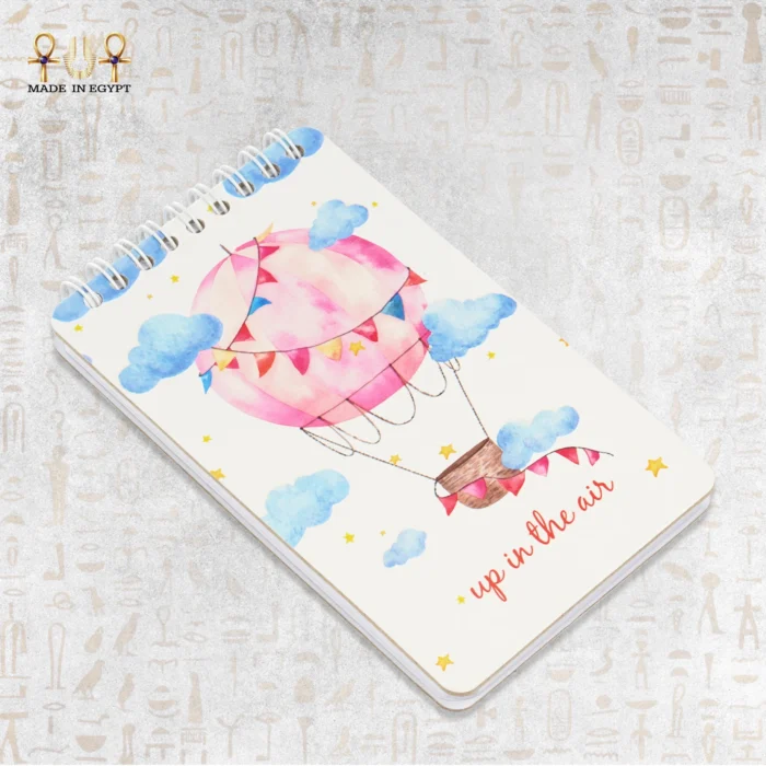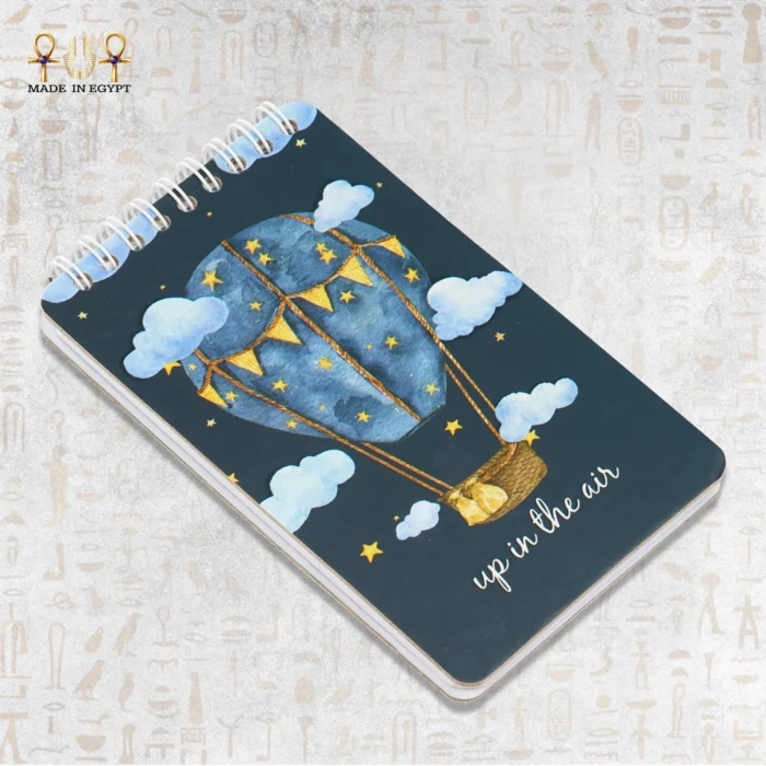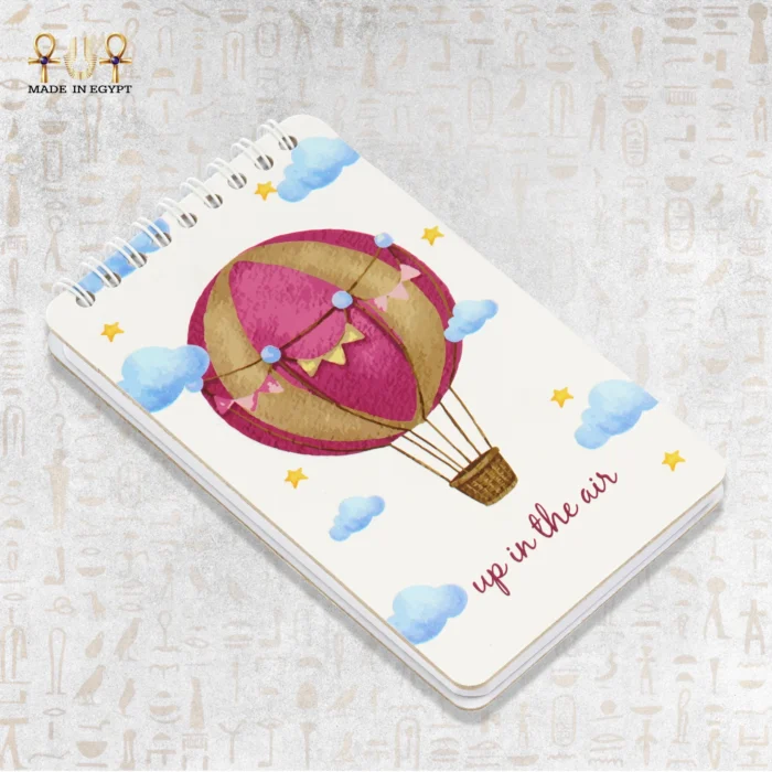 “Air” notebook embodies a dreamy journey with a hot air balloon design floating among stars and clouds. Perfect for jotting down thoughts and dreams with elegance and calm.