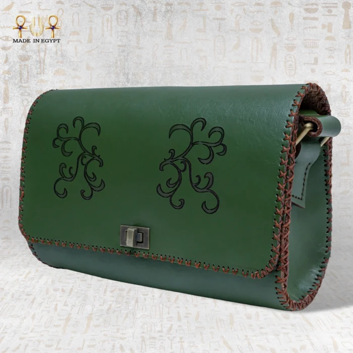The Forest Soul Bag beautifully embodies the quiet mystery and beauty of nature. Its deep green hue, intricate black engravings, and warm brown stitches come together to create a piece that feels both soulful and refined. Handcrafted from premium genuine leather, it reflects a harmonious blend of traditional Egyptian craftsmanship and modern artistic vision.