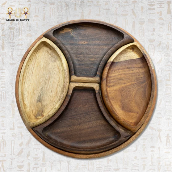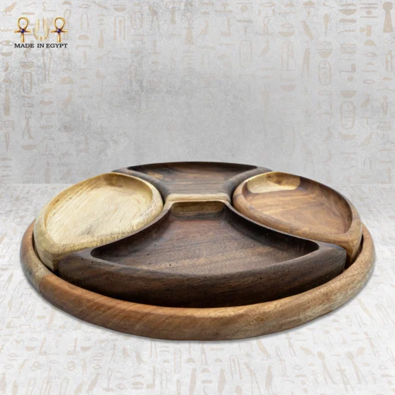The set includes multiple curved compartments designed to hold nuts, dried fruits, snacks, or small appetizers. Each section keeps flavors separate while remaining easy to reach. The circular layout encourages sharing and allows everyone around the table to serve themselves comfortably.