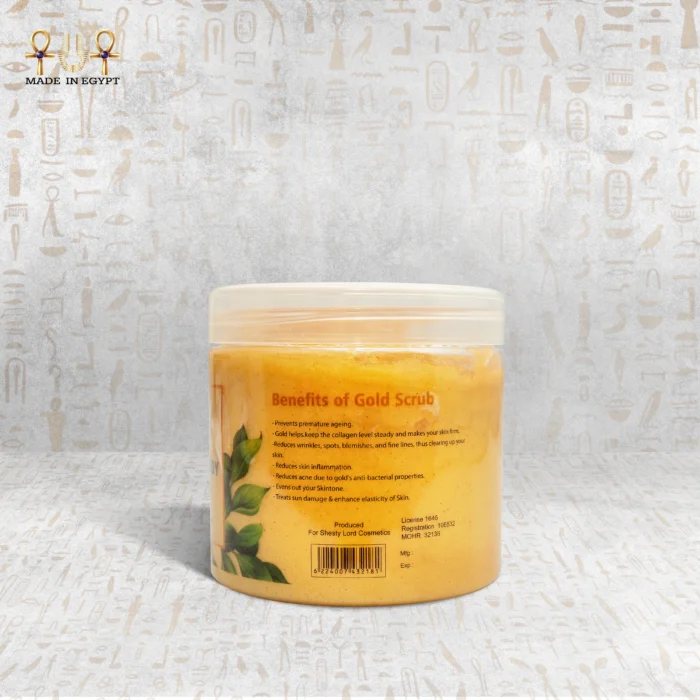 Use the gold body scrub 2–3 times per week. Apply to damp skin, gently massage in circular motions, then rinse thoroughly. Safe for face, neck, elbows, knees, and other areas that need extra care.
