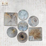 You can arrange the plates as a cohesive wall installation or space them individually across rooms. The Gold Trees Collection complements living rooms, bedrooms, hallways, and office spaces. Furthermore, its soothing palette and golden details create a serene and sophisticated atmosphere. This set also serves as a thoughtful gift for those who appreciate handcrafted, artistic wall décor with timeless appeal.