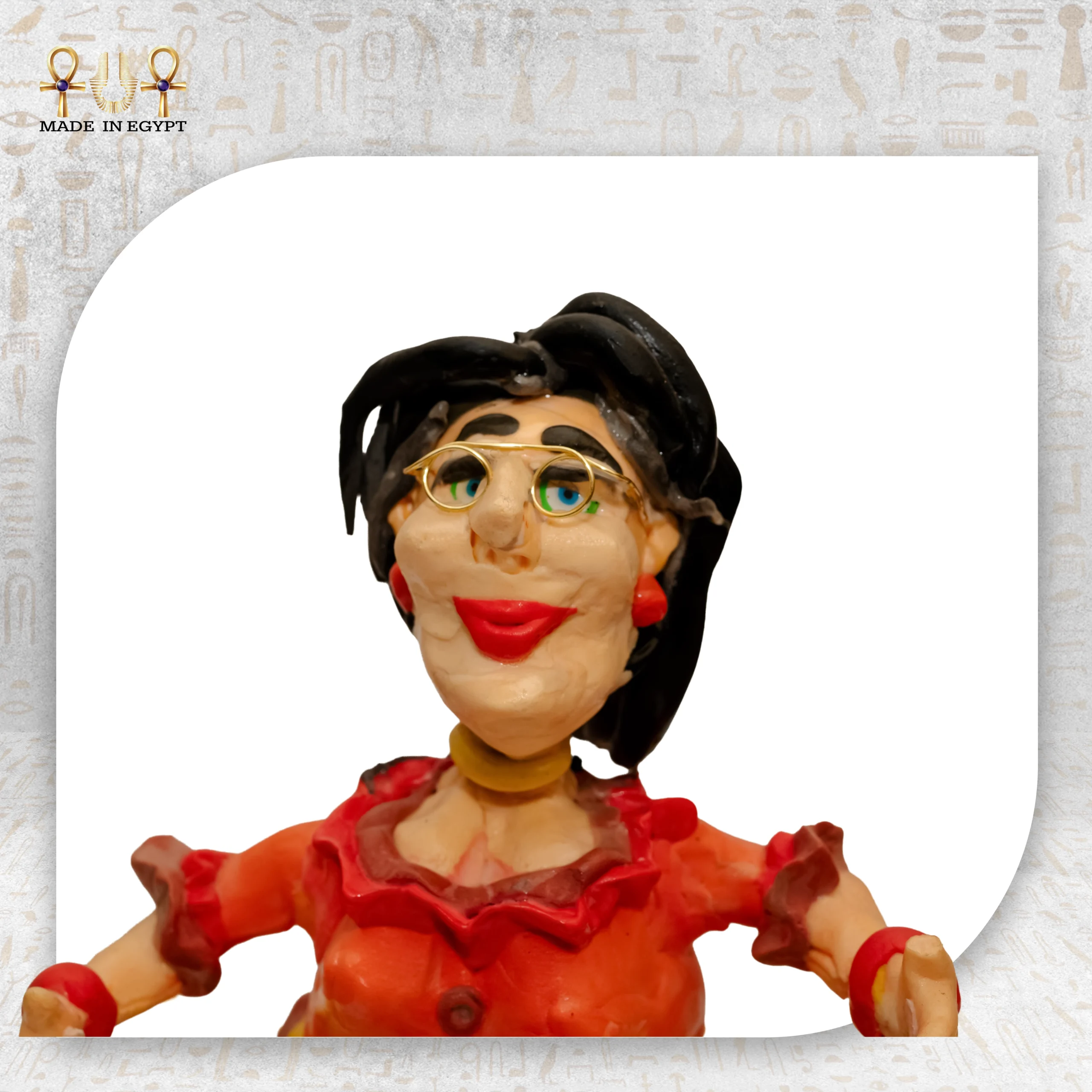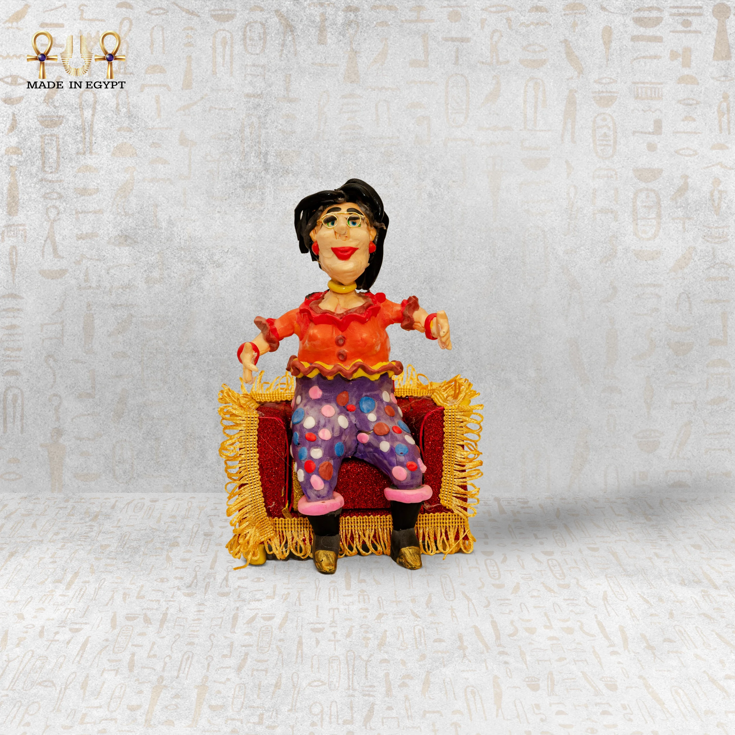 A handcrafted figurine portraying the Egyptian grandmother with warmth and playful charm, symbolizing care, wisdom, and timeless stories. A heartwarming decorative piece full of character.