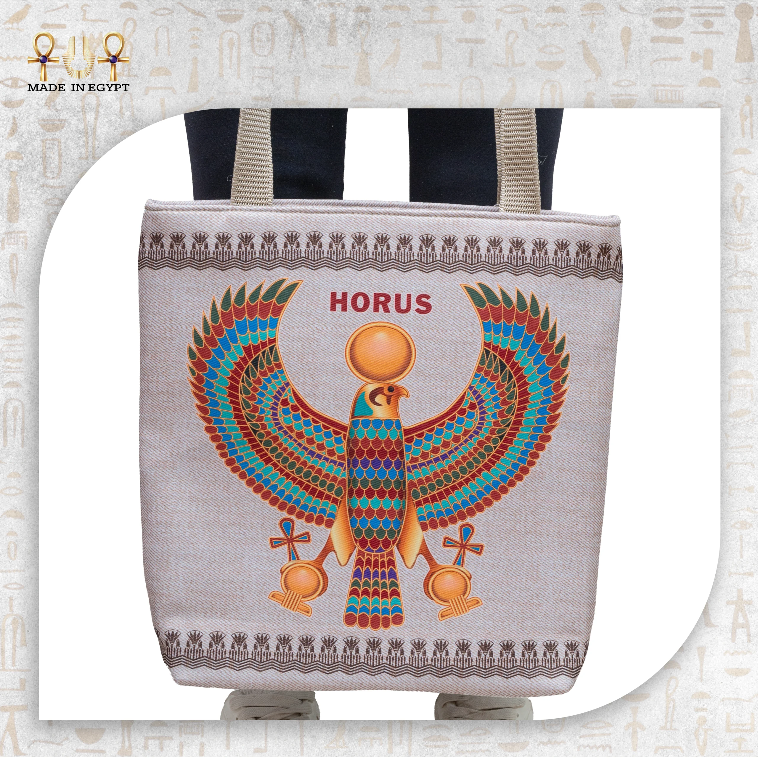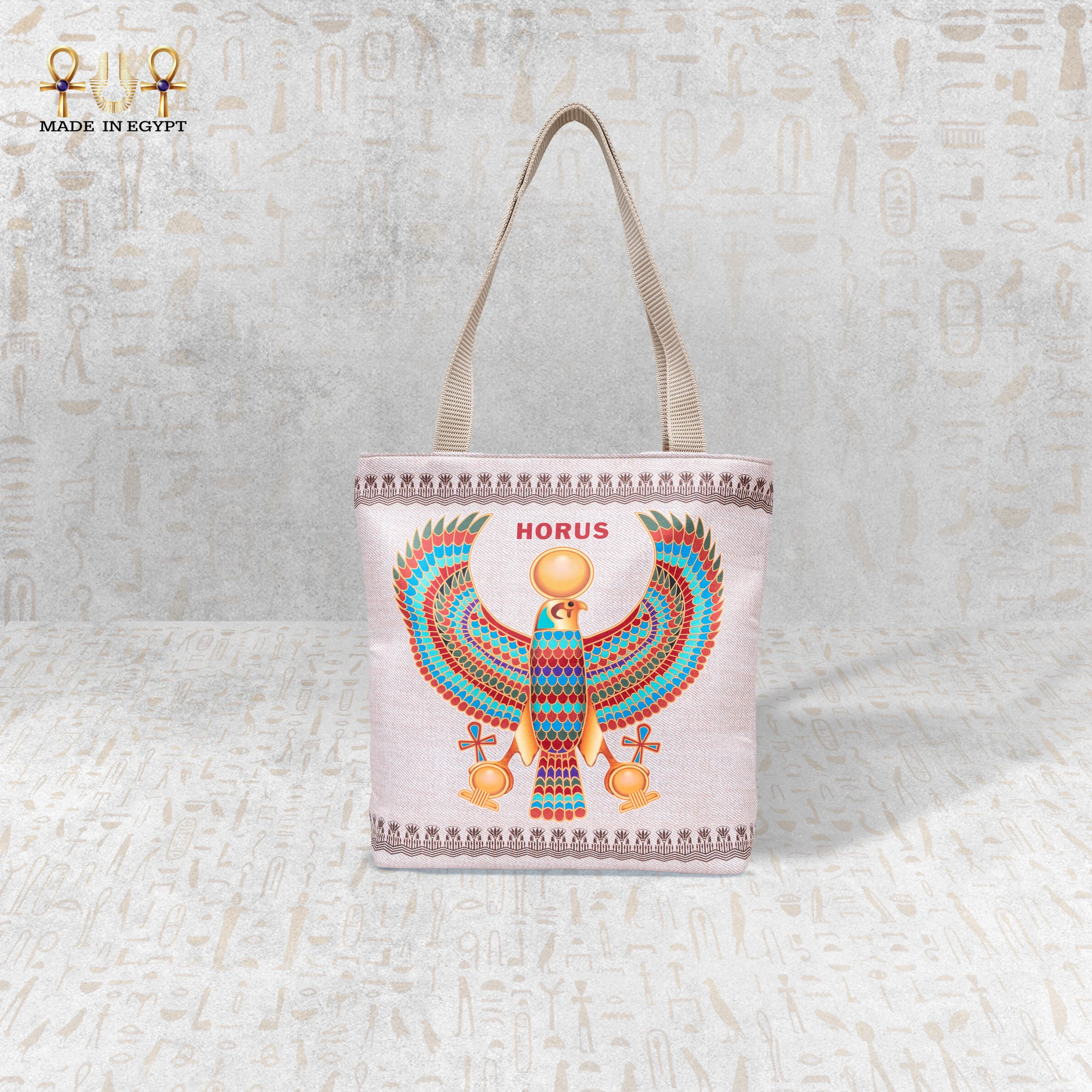 The Horus Tote Bag is a true artistic masterpiece, inspired by the beauty and symbolism of ancient Egypt. It features the image of Horus, the falcon-headed god who represents protection, strength, and divine vision.
