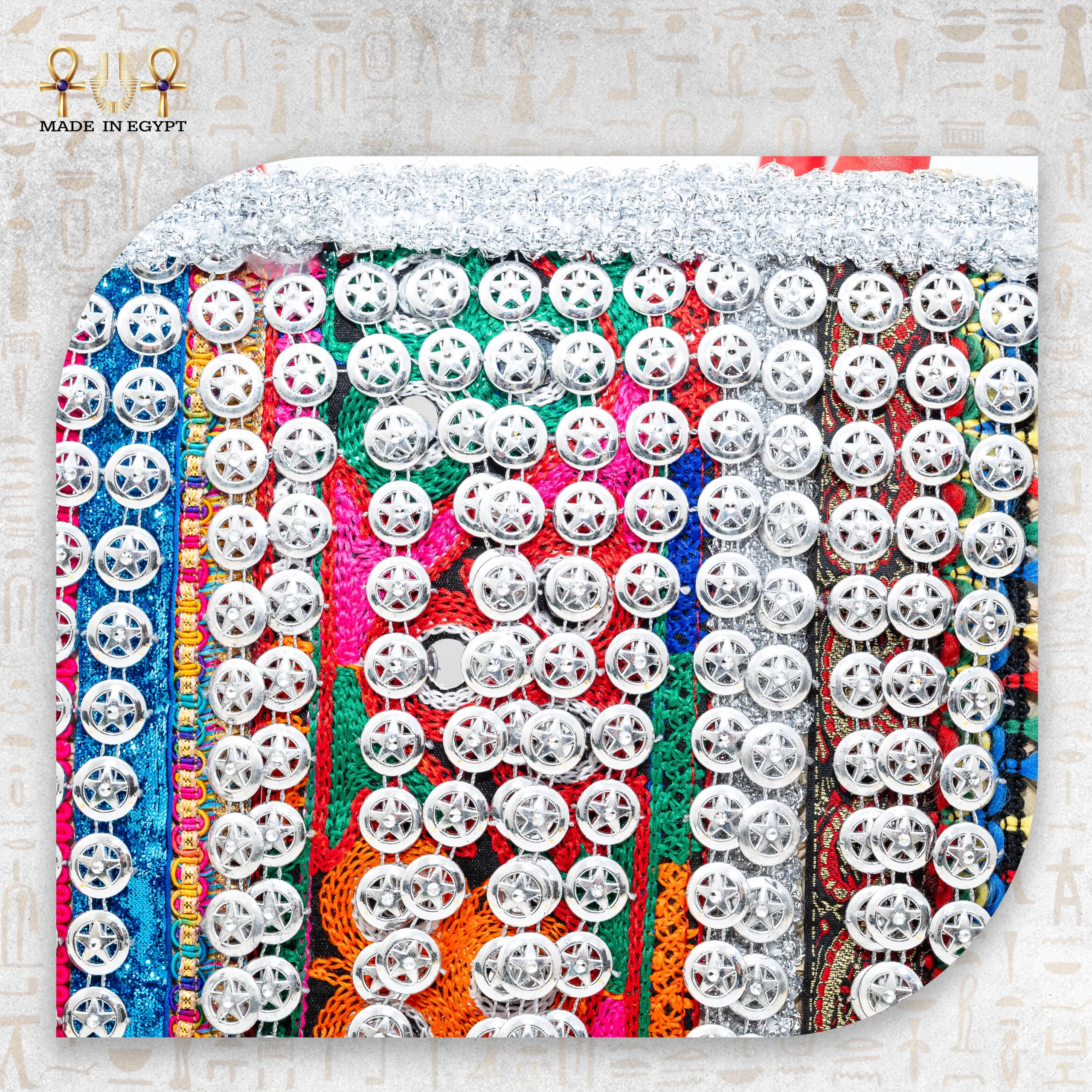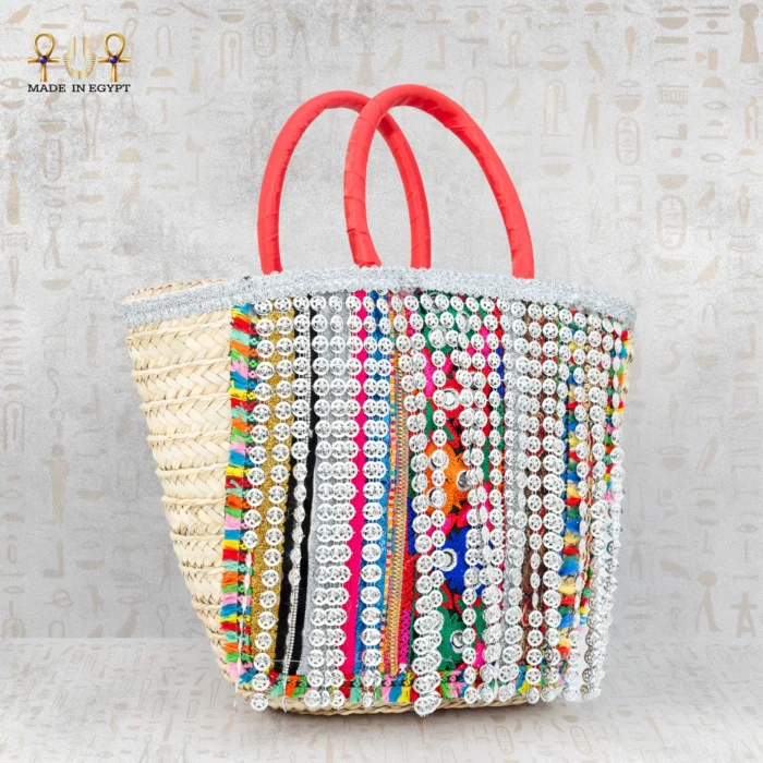 This piece highlights Egyptian palm-weaving craftsmanship blended with Indian-inspired decorative art. It adds brightness, culture, and character to any outfit. Perfect for people who love unique statement pieces that express individuality and confidence.