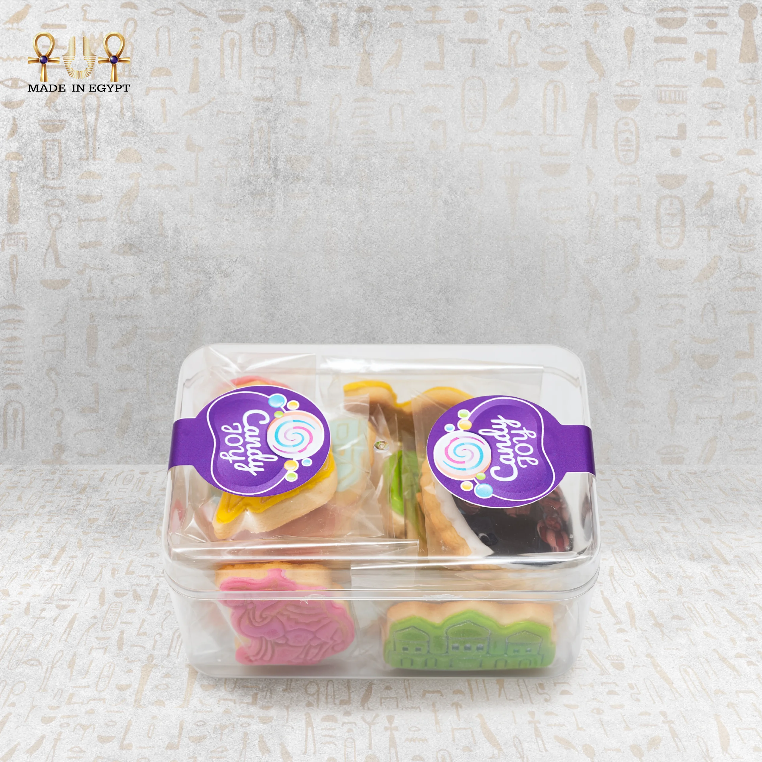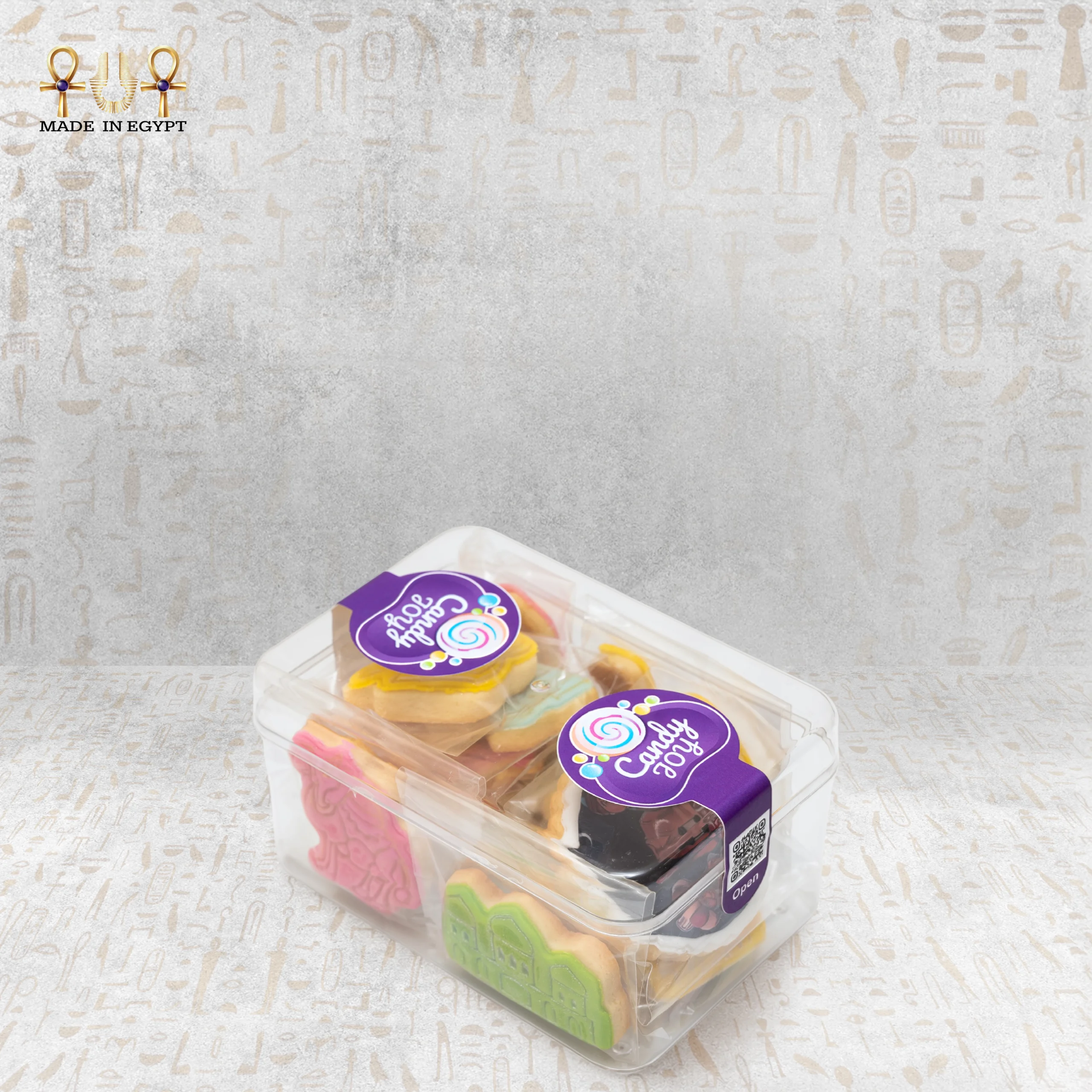 The elegant clear packaging keeps each cookie fresh and crisp. It also showcases the colorful shapes beautifully. The purple Joy Candy label adds a premium festive finish, so the box looks gift-ready without extra wrapping.