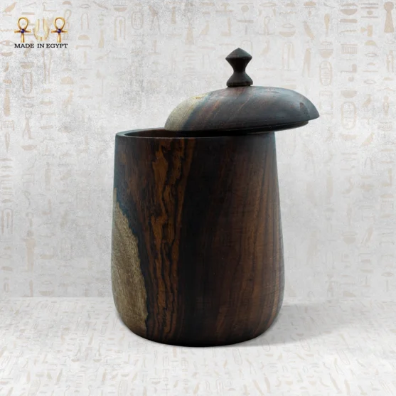 A wooden jar made from natural wood, featuring an elegant design with a tight-fitting lid to neatly store spices, tea, coffee, or sugar. Its natural wood grain adds a warm touch to the kitchen, making it practical for everyday use while also serving as a simple and stylish decorative piece.