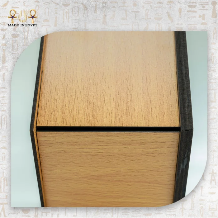Crafted with precision from high-quality MDF wood, the box combines durability, strength, and refined aesthetics. The harmonious blend of black, beech, and natural wood tones creates a rich and sophisticated appearance. Its hexagonal shape adds depth and uniqueness, symbolizing balance, perfection, and unity — principles deeply cherished in Islamic art and culture.