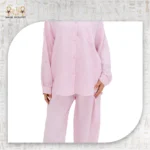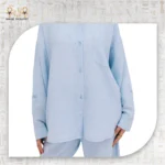 Moreover, linen’s natural texture gives this outfit a timeless charm. The minimalist design ensures that it never goes out of style. You can wear the pieces together for a coordinated outfit or mix and match them with other wardrobe favorites. The shirt pairs beautifully with jeans or skirts, while the trousers look chic with a simple tank or crop top.