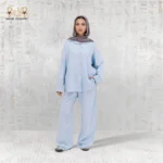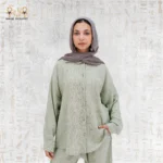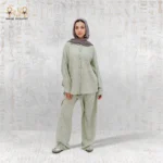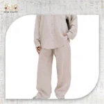 Available in mint green, blush pink, stone grey, natural beige, and sky blue, the set complements a range of skin tones and personal styles. Therefore, it’s suitable for both casual days and semi-formal occasions. Whether you’re enjoying brunch with friends, walking along the beach, or relaxing at home, this set adapts effortlessly to your plans.