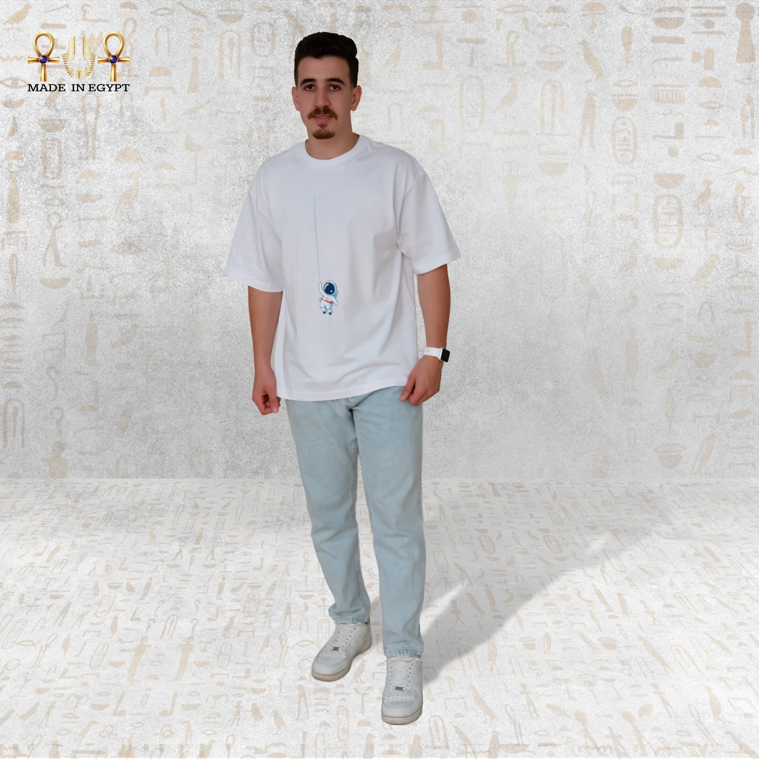 The minimal graphic in the center creates a neat and tidy look, while the cartoon astronaut adds a joyful touch. The high-quality print prevents cracking, peeling, or fading. This ensures the artwork remains crisp and vibrant for years, keeping the T-shirt visually appealing.