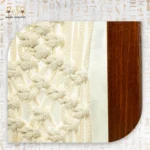The macramé detailing creates soft, intricate patterns that contrast beautifully with the smooth wooden frame. Sturdy hooks at the base hold keys, jewelry, or small accessories, while the top surface works as a mini shelf for candles, décor items, or potted plants. In addition, the cotton threads are both durable and soft, offering a tactile and visually balanced design.