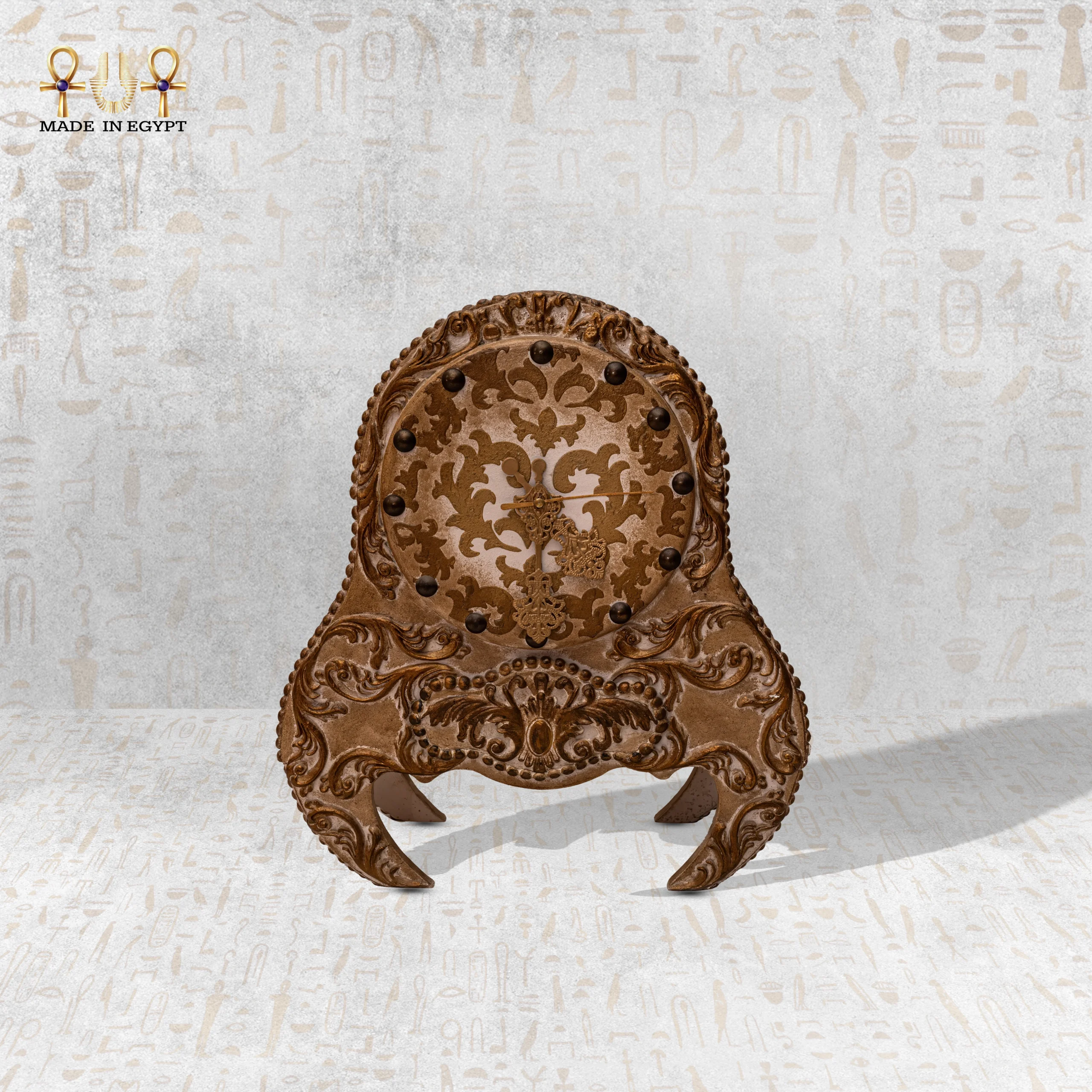 The Majestic Hour clock transforms timekeeping into art. It’s more than a decorative piece—it’s a symbol of elegance and legacy. Designed for those who appreciate luxury and refinement, it brings together classic European artistry and authentic Egyptian craftsmanship. Each detail reflects precision, harmony, and the timeless pursuit of perfection.