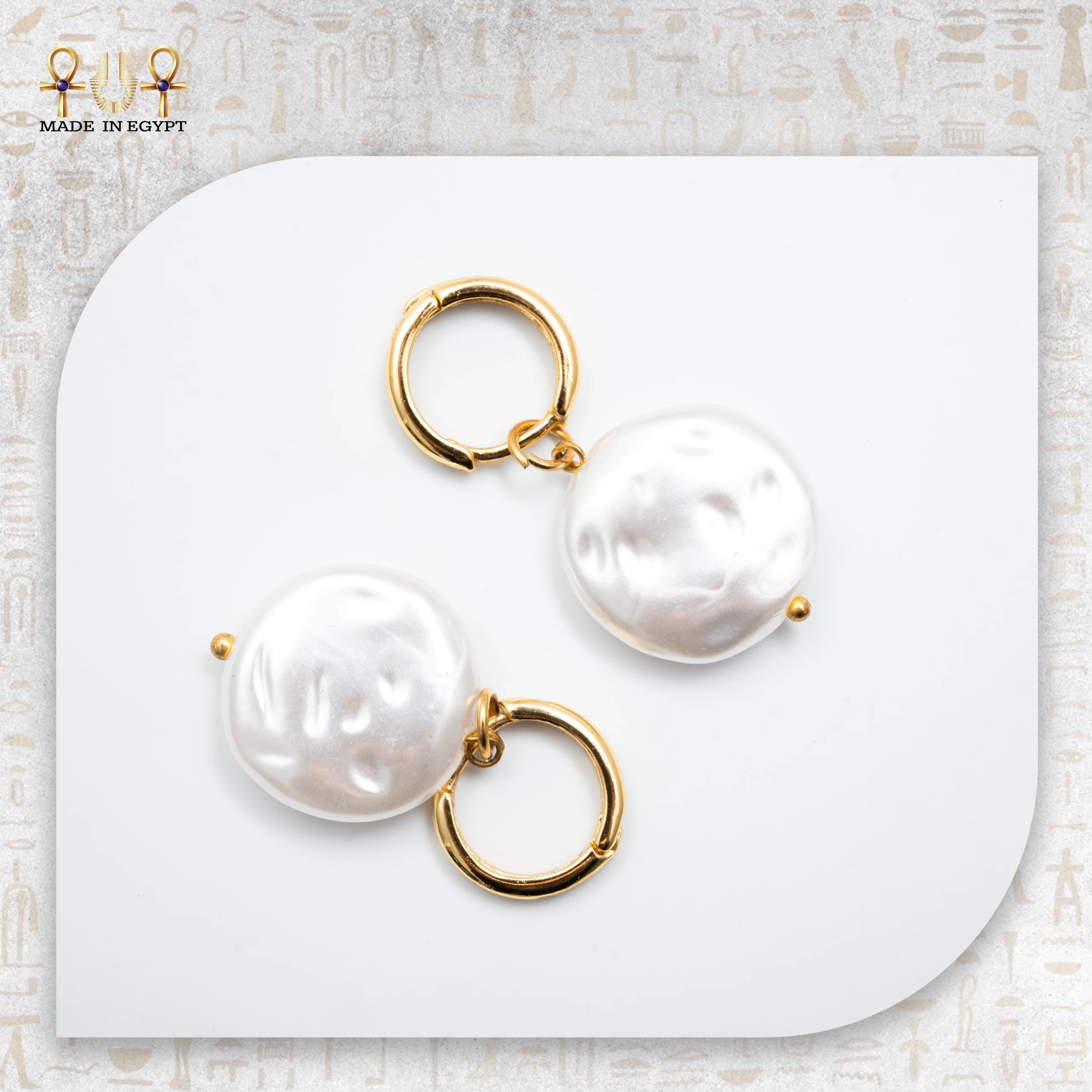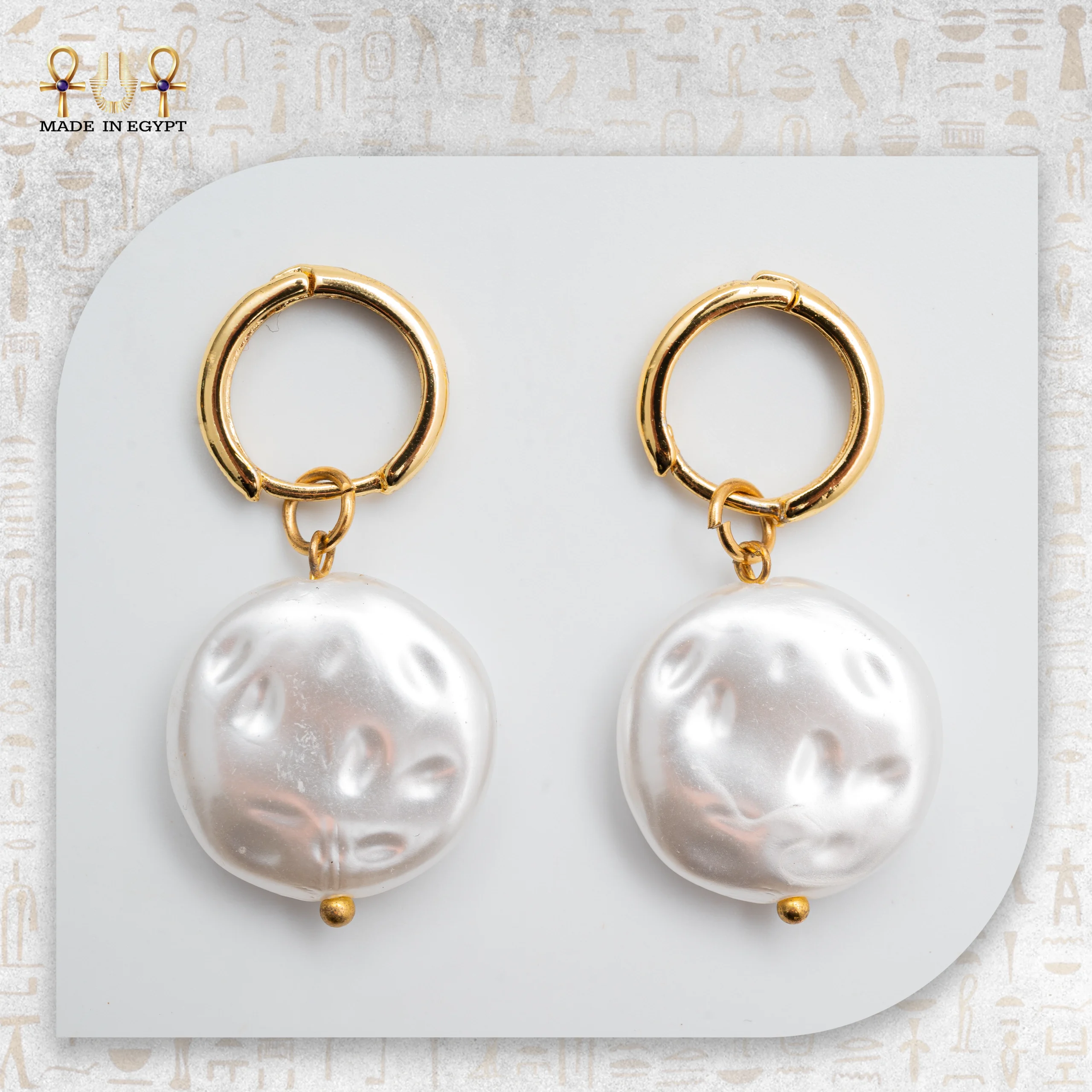 Complementing the pearl-style stones, the hematite accents bring a modern metallic touch. Known for grounding and strength, the silver-toned hematite provides a refined contrast against the warm gold of the hoop, enhancing the earrings’ sophisticated appeal.