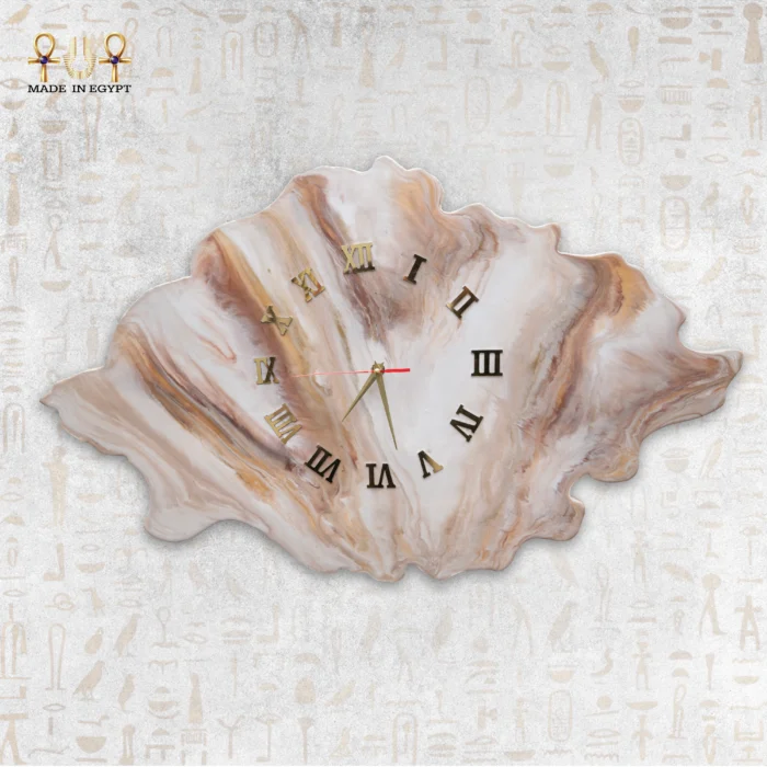 The Marble Shell Resin Clock is a handcrafted wall clock inspired by natural seashells and carved marble. Its surface blends beige, caramel, off-white, and golden brown tones, creating a soft, marble-like texture that feels warm and luxurious.