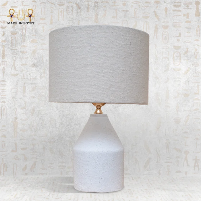 The Mera Table Lamp is more than just a lighting piece — it’s an elegant work of art. Inspired by contemporary Egyptian design, it blends modern minimalism with serene sophistication. Crafted with precision, the lamp’s base is made of natural pottery by skilled artisans, giving it a textured matte finish that feels both earthy and luxurious. The rough ceramic surface reflects organic beauty that suits all interior styles, from classic to modern. The soft beige fabric shade adds a gentle, calming touch, completing its refined aesthetic.