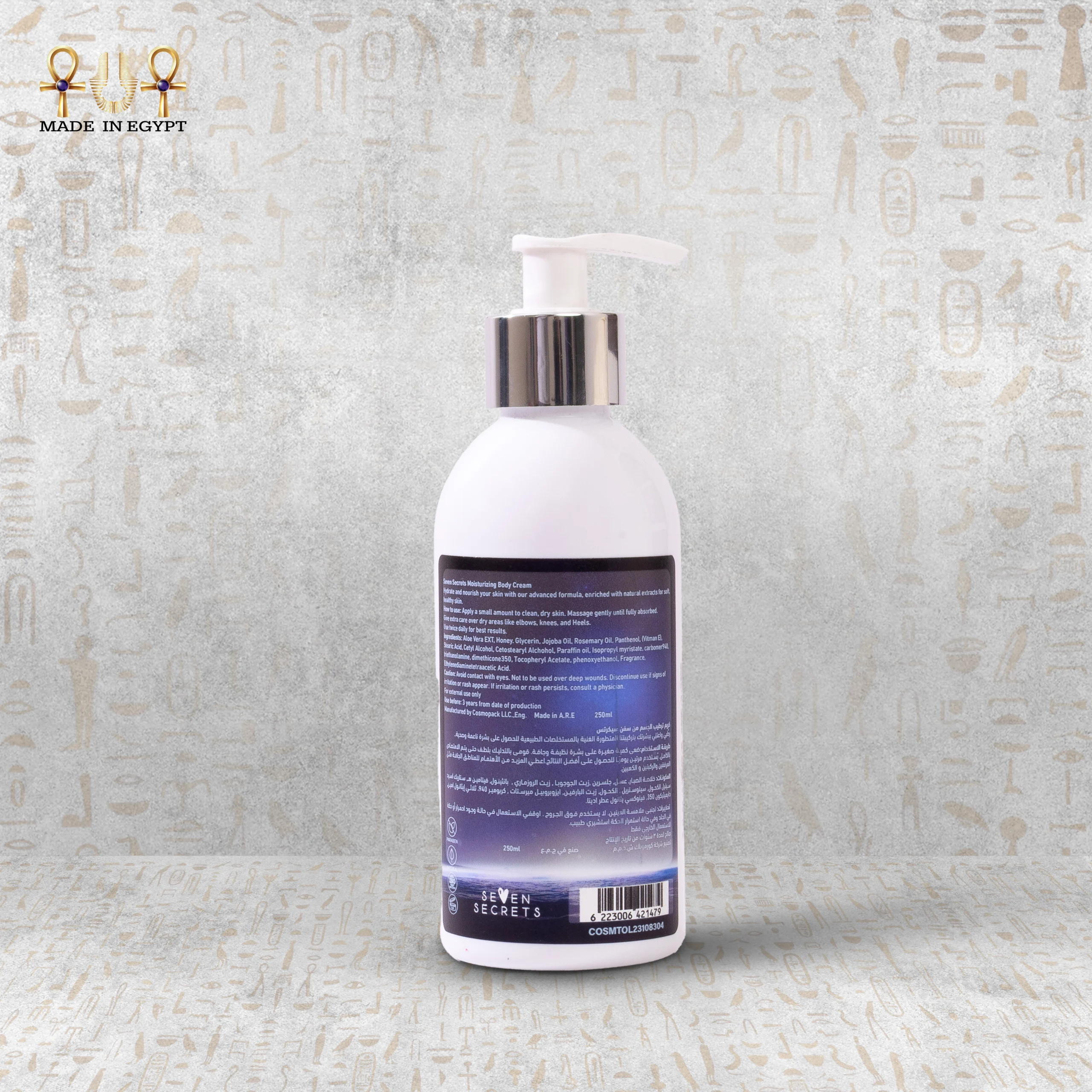 This premium body cream combines the power of glycerin, panthenol, natural honey, and vitamin E with aloe vera extract, rosemary oil, and jojoba oil — a perfect blend that works harmoniously to nourish your skin, renew its cells, and enhance its elasticity while maintaining a silky smooth texture.