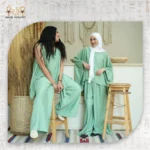 Transitioning easily from daywear to evening style, this mint outfit is designed to suit both modest and non-modest fashion. You can pair it with a hijab for a refined, full-coverage look or wear it off-shoulder for a modern, breezy appearance.