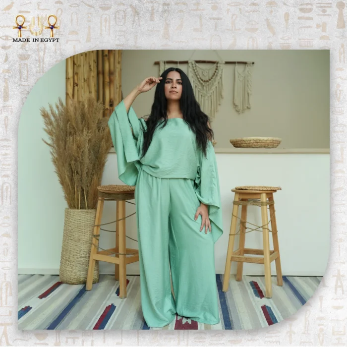Proudly made in Egypt, this green linen set reflects fine craftsmanship and minimalist luxury. Every stitch carries precision, while the fabric embodies breathable quality. Its airy texture makes it perfect for summer vacations, café outings, or afternoon walks. Whether styled with golden jewelry or kept simple with neutral tones, the Mint Green Cut Set becomes an instant wardrobe essential.