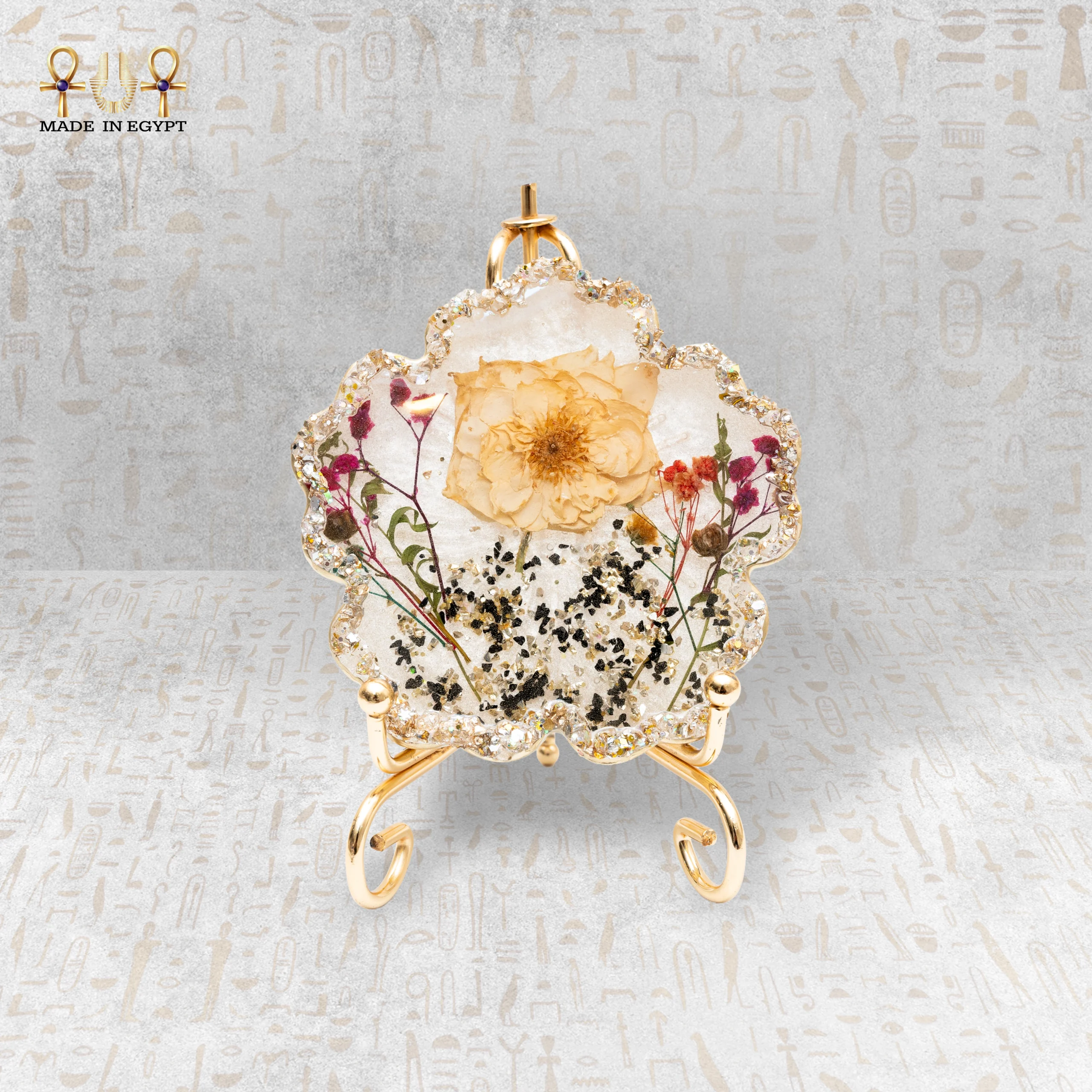 The Natural Dried Flower Resin Coaster blends natural beauty with artistic craftsmanship. This handcrafted piece adds a soft and elegant touch to any space. As a result, it enhances your décor while offering practical everyday use.