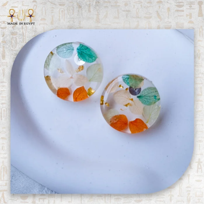 Beyond their visual beauty, the earrings symbolize balance and renewal. They merge modern design with traditional Egyptian craftsmanship, showing how nature and art can exist in harmony. The combination of resin, flowers, and leaves creates a design that feels authentic, fresh, and timeless.