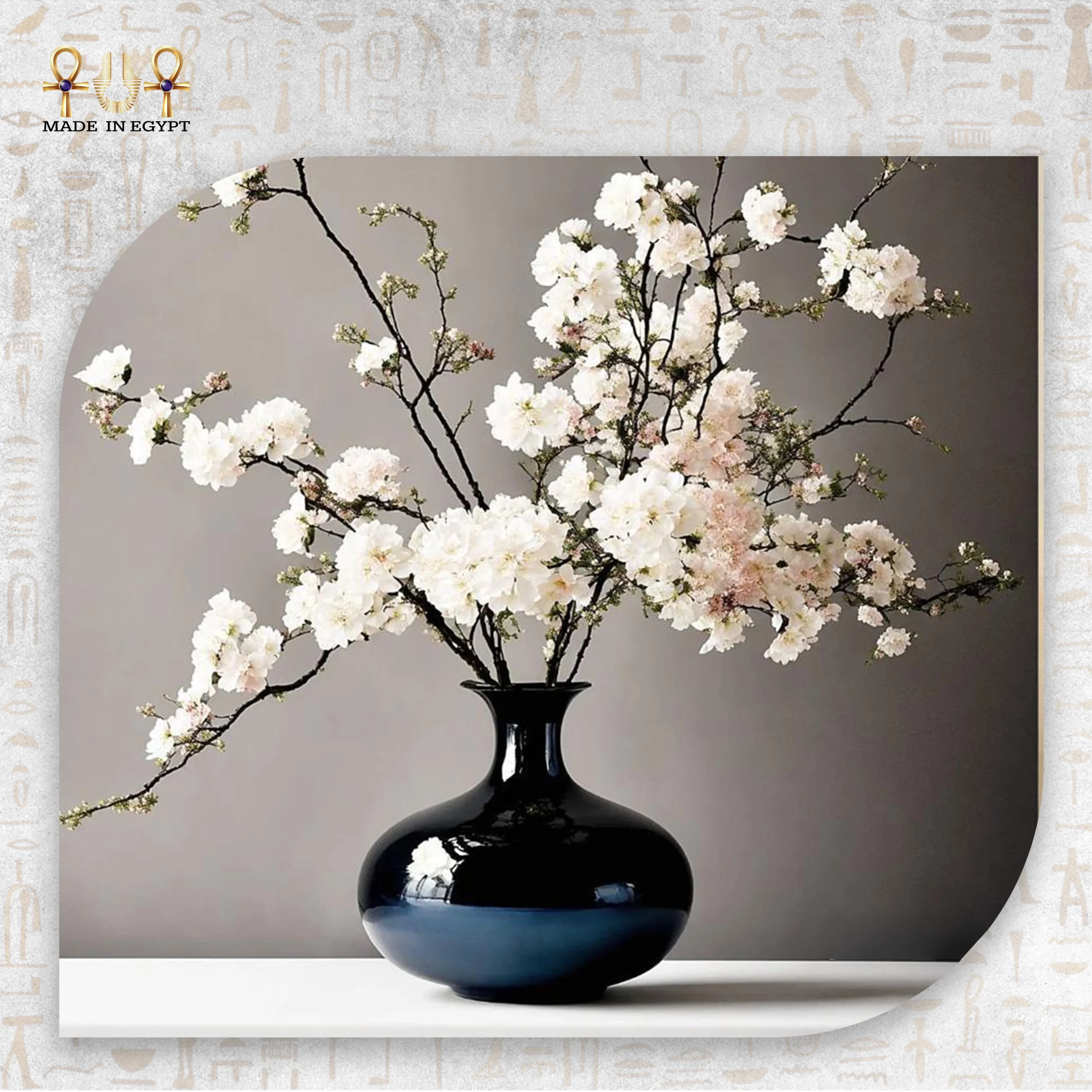The Night Shadows Vase showcases a wide, rounded body paired with a narrow neck, forming a graceful silhouette that highlights its artistic appeal. Its smooth, glossy finish reflects light beautifully, enhancing the depth of its rich black and deep blue tones. Each vase is carefully crafted to ensure perfect balance, durability, and a flawless finish. The elegant design allows you to display tall stems, blooming branches, or minimalist floral arrangements effortlessly.
