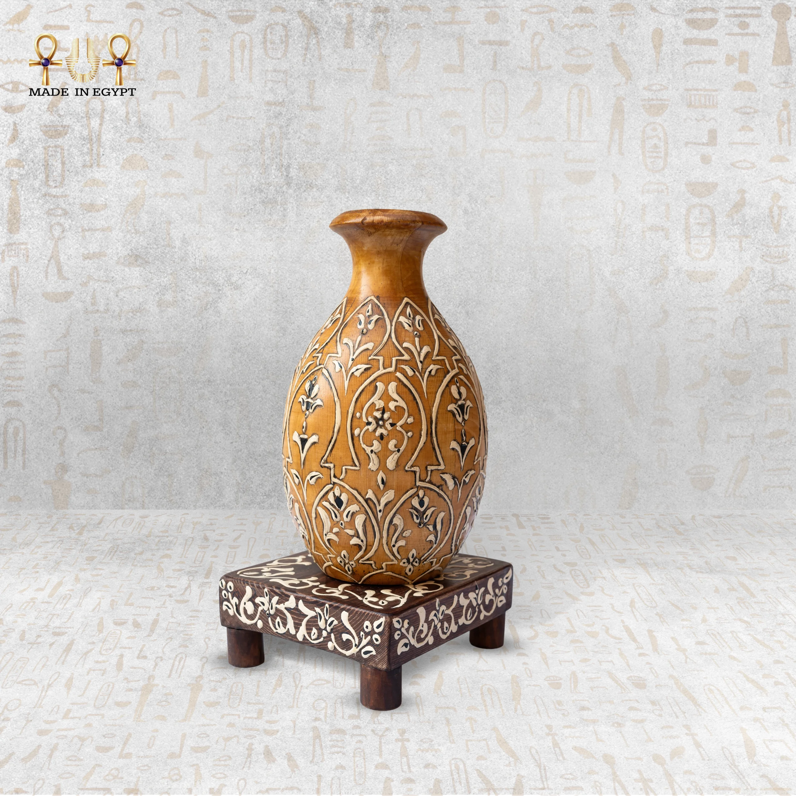 A handcrafted wooden décor piece featuring delicate Eastern patterns and a warm heritage-inspired touch. Its elegant design and calm detailing make it a perfect accent for adding authenticity and serenity to any space.