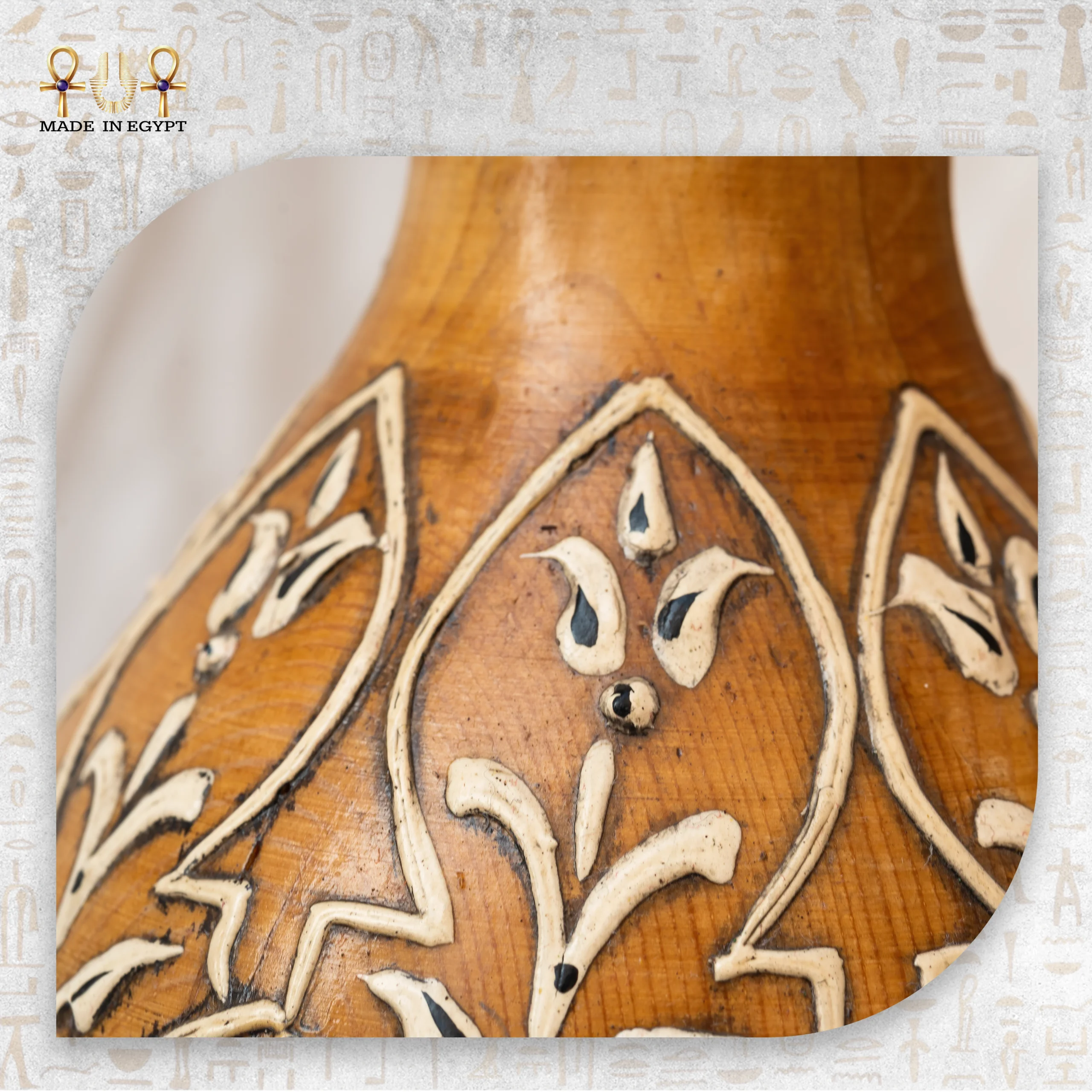 Ornamented Lantern is a handcrafted artistic piece that embodies the spirit of heritage and the beauty of traditional craftsmanship. It combines natural wood with Eastern-inspired ornamentation to create a visual harmony that evokes warmth, calm, and timeless elegance. More than a decorative object, this lantern expresses authenticity, balance, and refined beauty.
