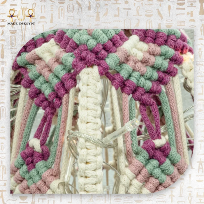 The lantern’s metal dome frame is carefully coated for strength. Afterward, artisans wrap it in intricate macrame patterns that highlight their precision and creativity. In addition, the built-in LED light emits a warm, soothing glow that filters beautifully through the woven cords. As a result, it creates a soft ambiance that’s ideal for cozy evenings or decorative displays.