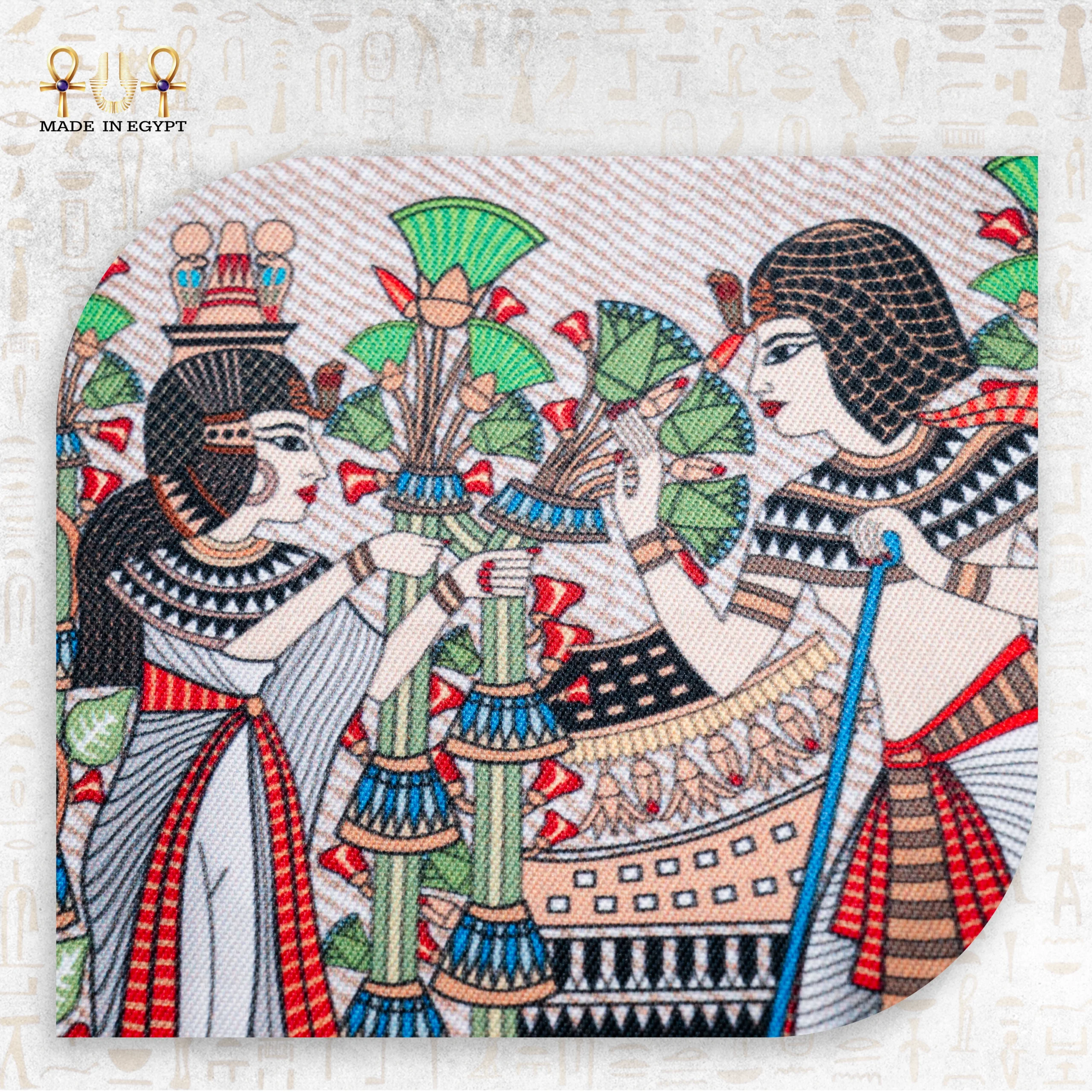 This historic scene comes alive with vibrant detail and rich colors. Shades of beige, red, green, and blue mirror the artwork once seen in temples and tombs. Every line and hue reflects the spirit of a civilization that celebrated both love and artistic expression.