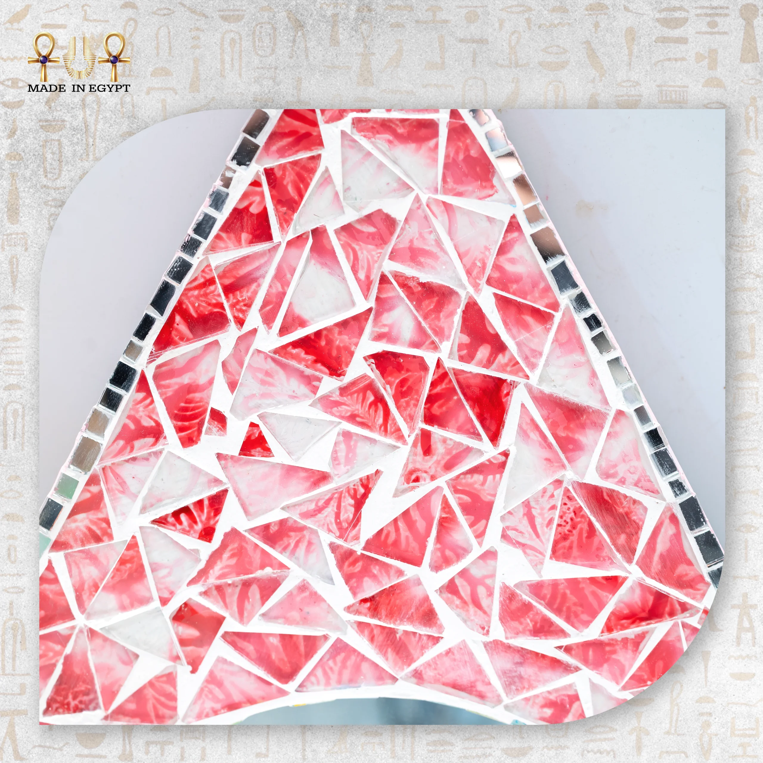 The Pink Drop Mirror is more than a functional piece. It is a decorative statement that adds softness, charm, and artistic elegance to your home while supporting handmade Egyptian craftsmanship.