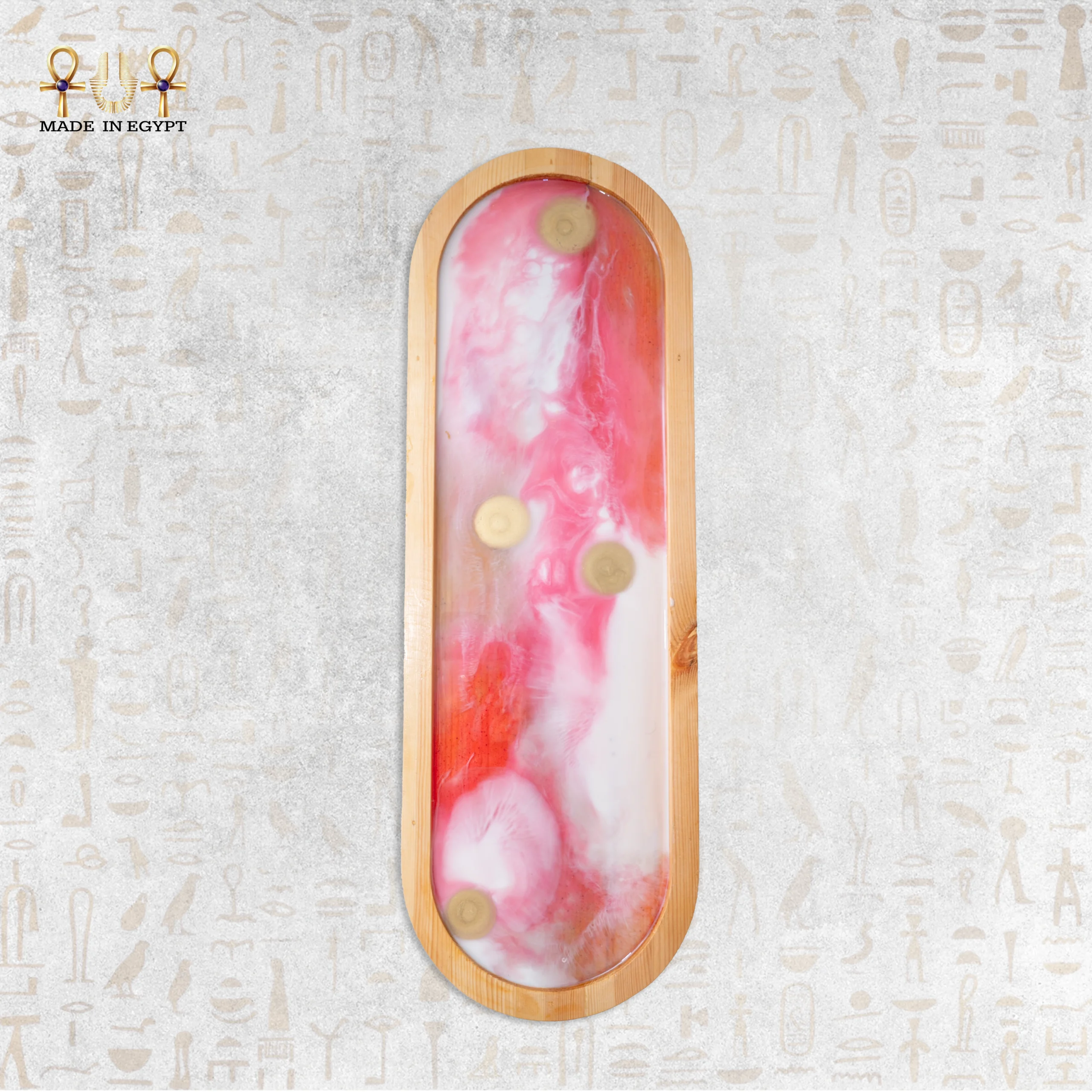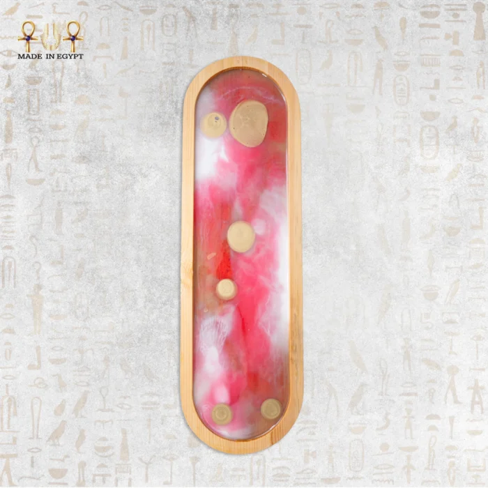 The Pink Mirage Tray reflects the spirit of modern Egyptian creativity. It draws inspiration from ancient craftsmanship and blends it with contemporary resin art techniques. The soft pink tones symbolize grace and calm, while golden accents suggest royalty and timeless luxury — a nod to Egypt’s rich artistic legacy.