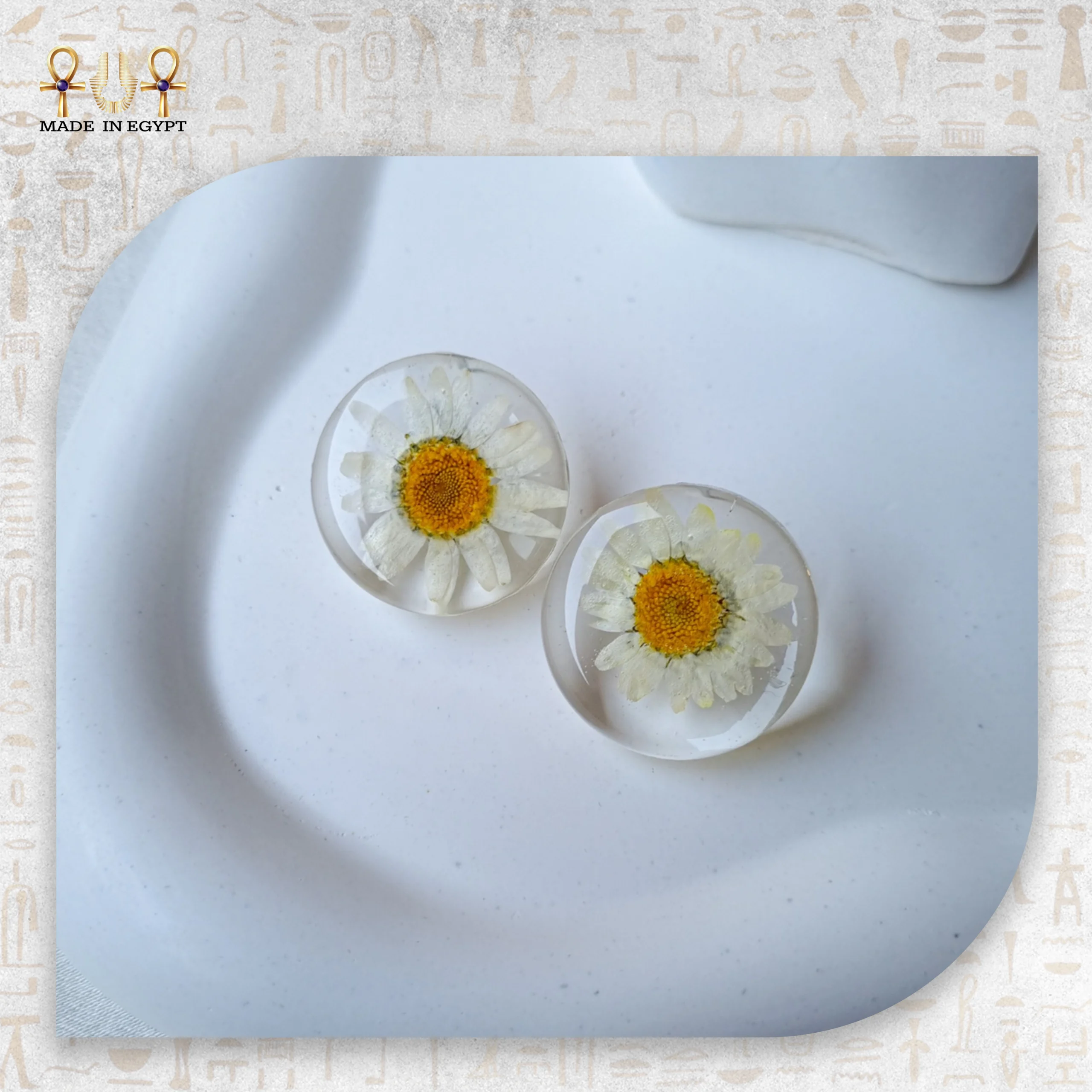 Beyond fashion, the earrings symbolize the connection between art and nature. They show how simple materials can become something meaningful. Each pair reflects creativity, balance, and the quiet confidence found in handmade Egyptian craftsmanship. The smooth resin and preserved flowers capture moments of calm beauty that never fade.