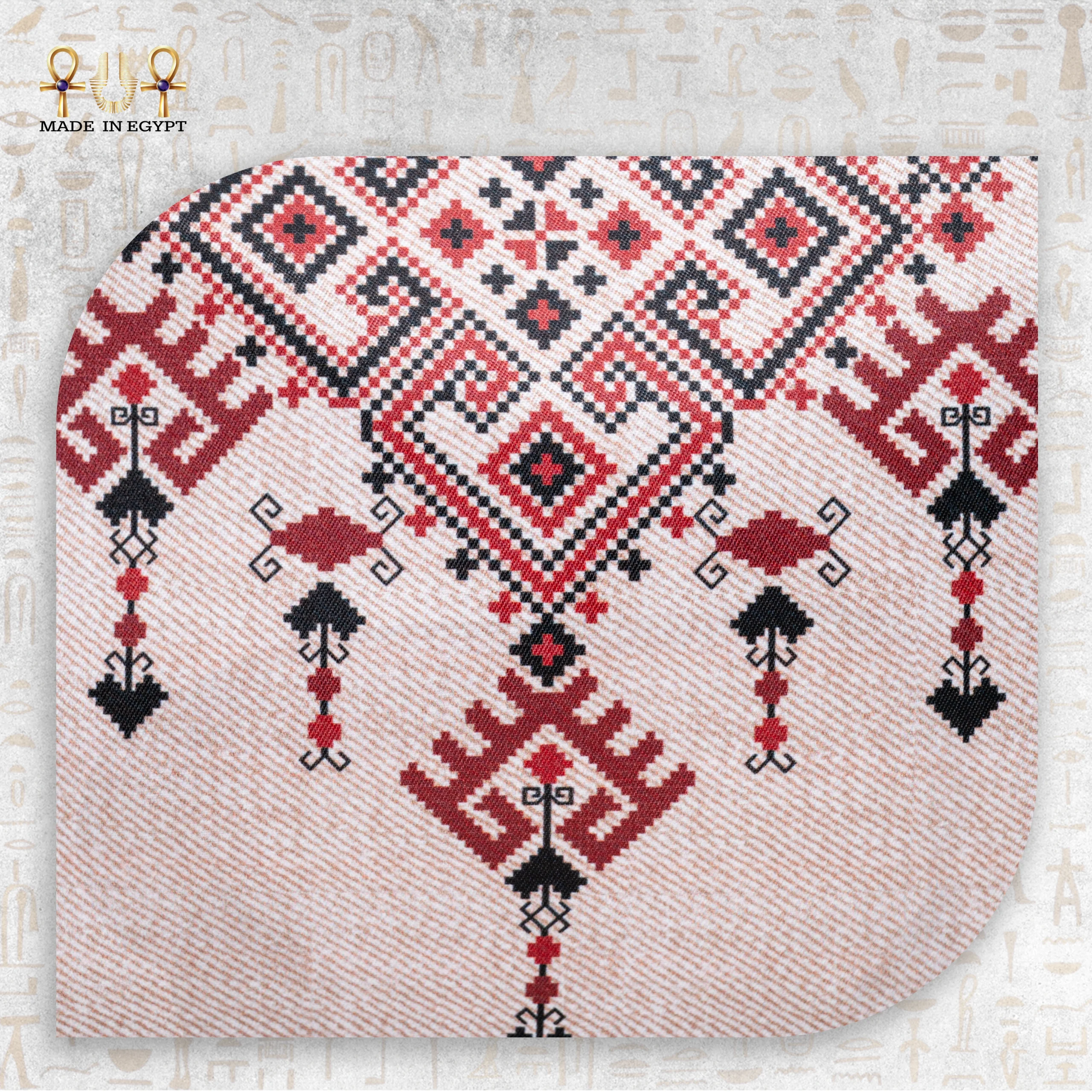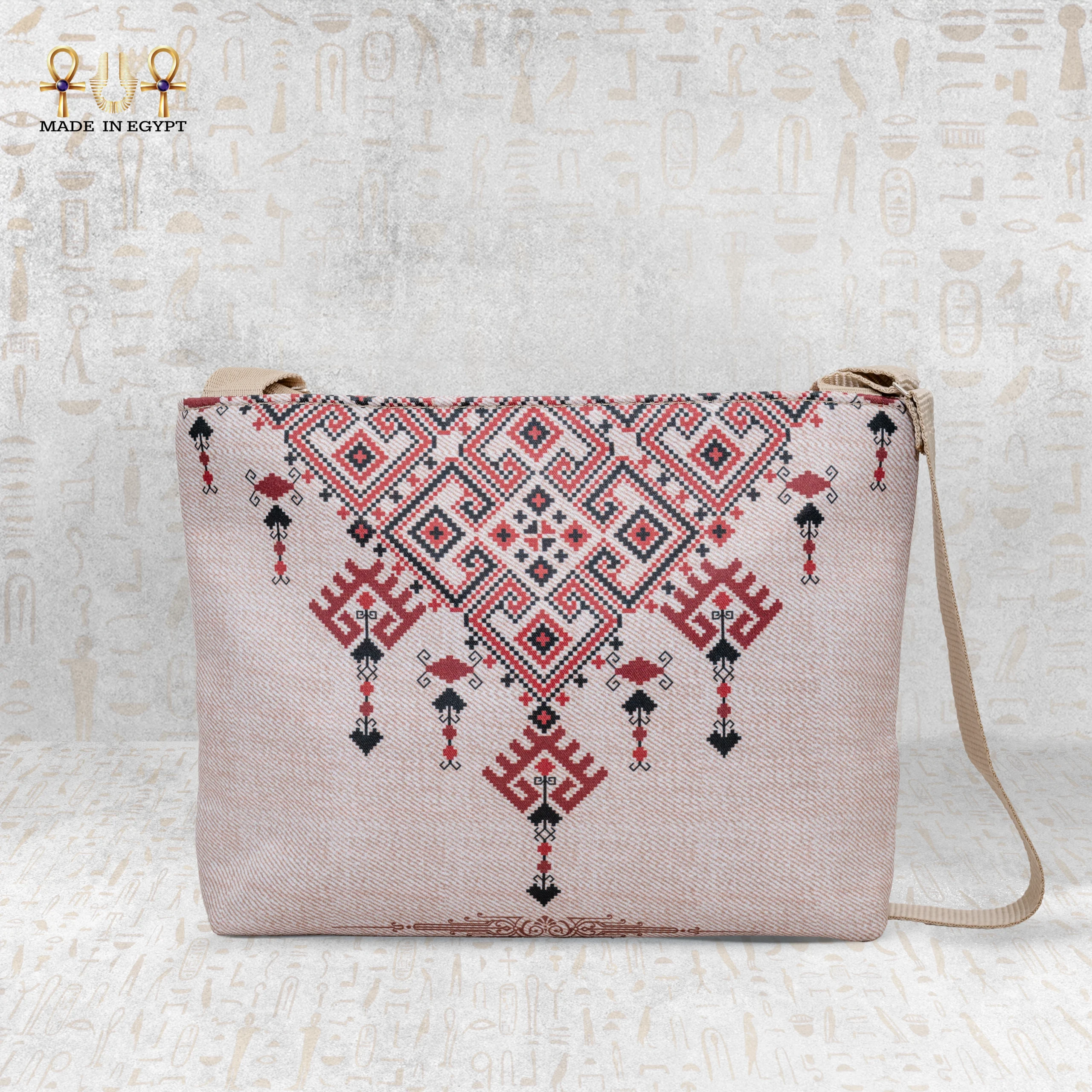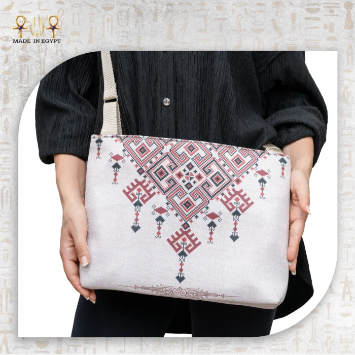 The Red Heritage Embroidered Bag blends traditional artistry with modern sophistication. Designed for women who appreciate cultural beauty, it captures timeless craftsmanship and meaning. Inspired by authentic Arabic embroidery, it showcases a striking geometric pattern made with fine red and black threads. Each stitch symbolizes strength, grace, and heritage, telling a story of identity and history. The design revives patterns once found on fabrics and garments across ancient Arab lands.
