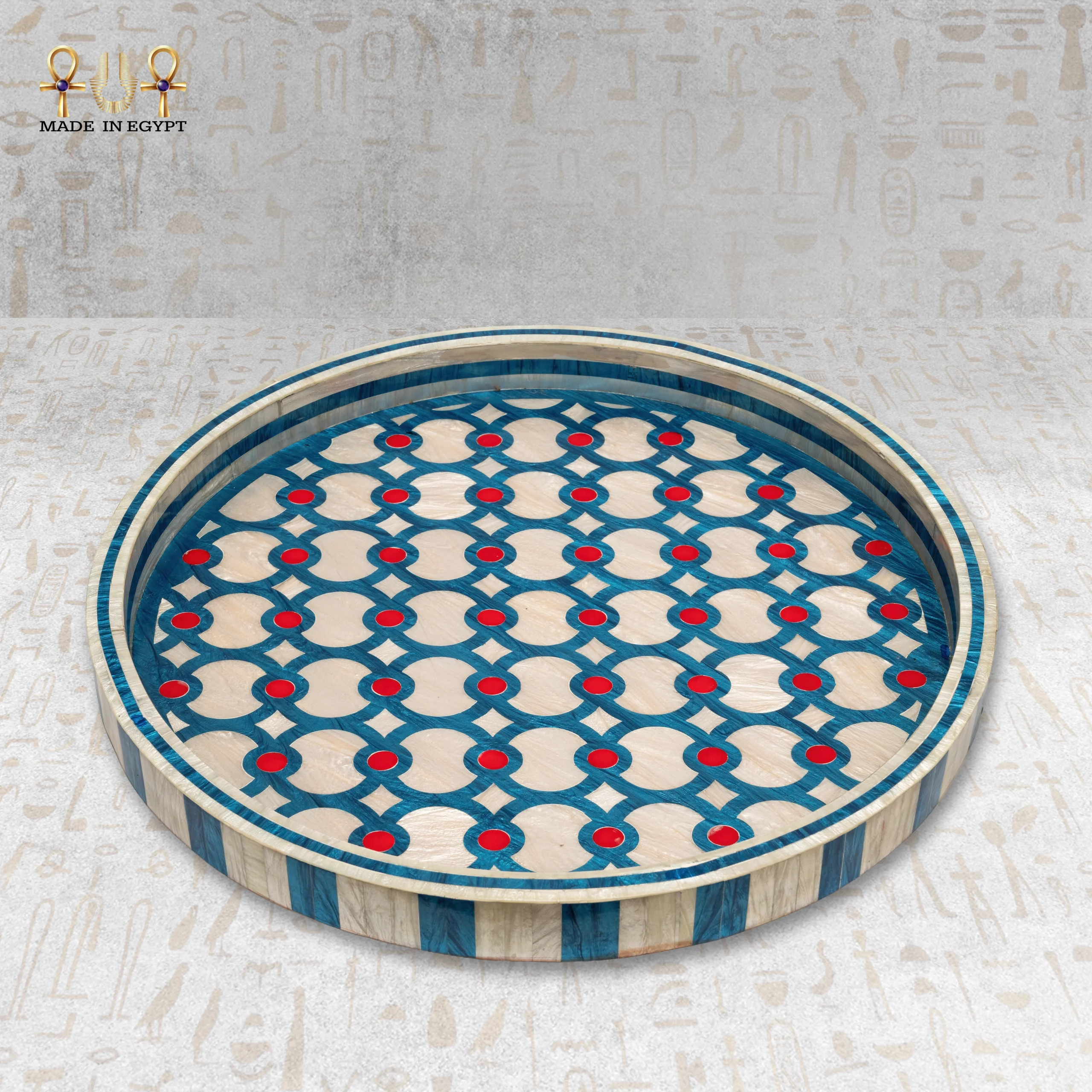 This round mother of pearl inlaid serving tray combines traditional craftsmanship with modern artistic expression. Made from high-quality natural wood, each tray undergoes meticulous manual processes that showcase the artisan’s skill and attention to detail.