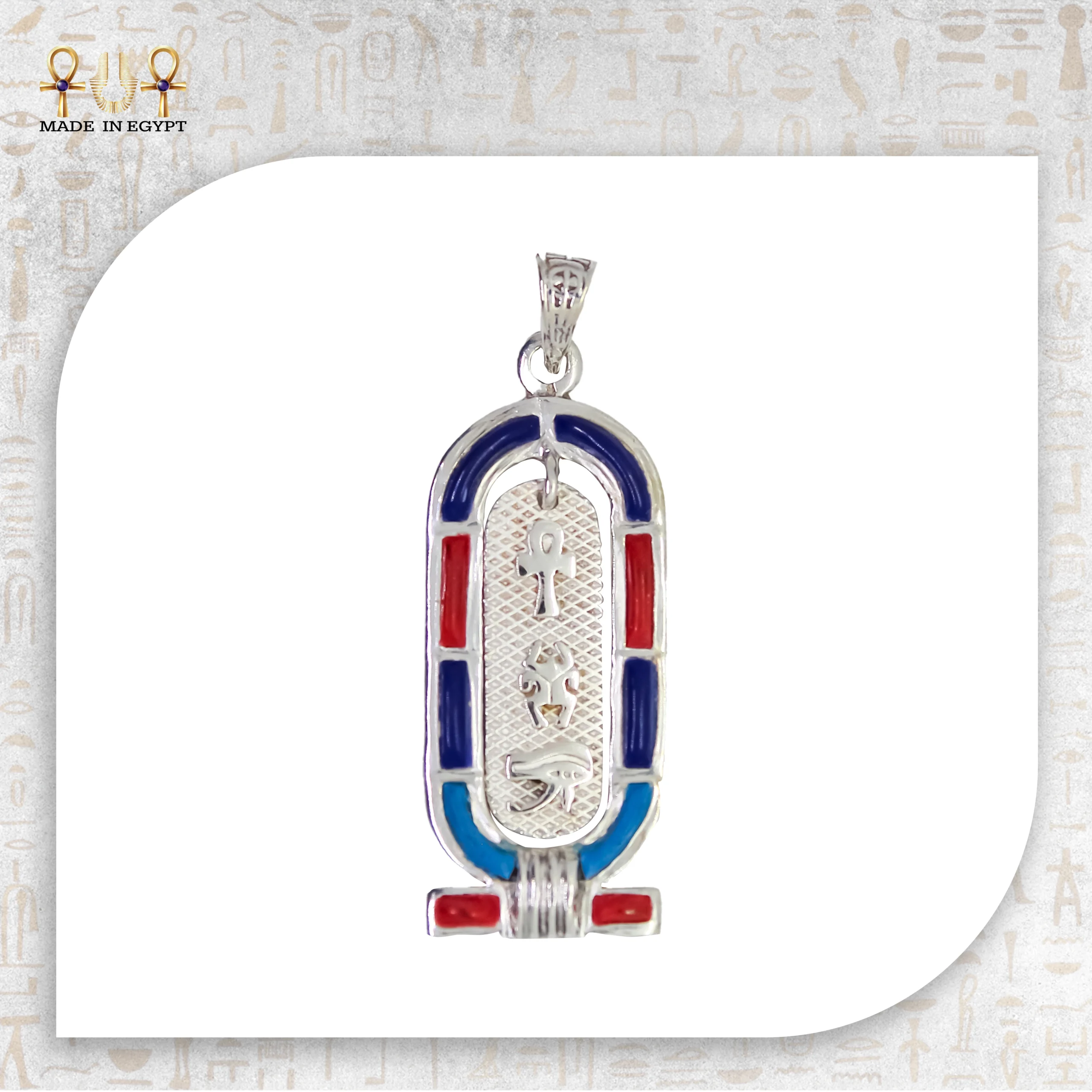 The Royal Colored Cartouche Pendant honors the majesty and vibrant spirit of ancient Egyptian royalty. Inspired by the sacred cartouche used to protect the names of pharaohs, this pendant combines vivid tones with symbolic beauty to create a modern heirloom of style and meaning.
