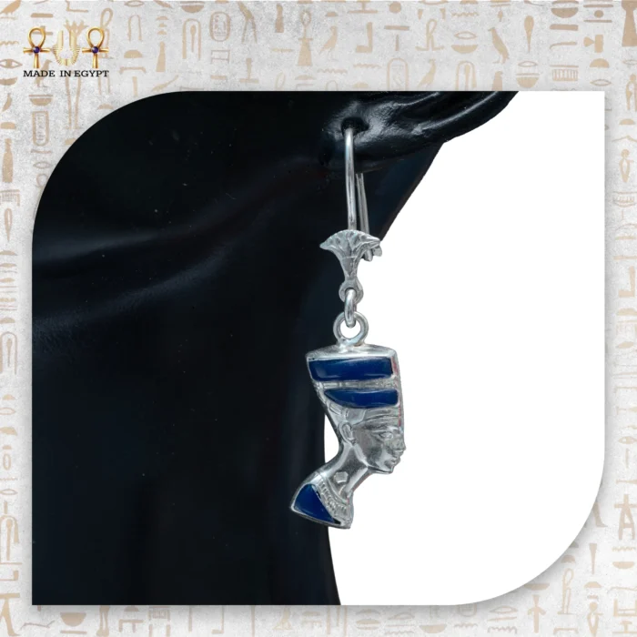 Crafted from high-quality Egyptian silver, these earrings shine with lasting brilliance. Skilled artisans hand-polish and engrave each piece, continuing traditions passed down through generations. The design is inspired by authentic statues of Queen Nefertiti found in ancient temples and archaeological sites, ensuring a genuine connection to Egypt’s royal legacy.