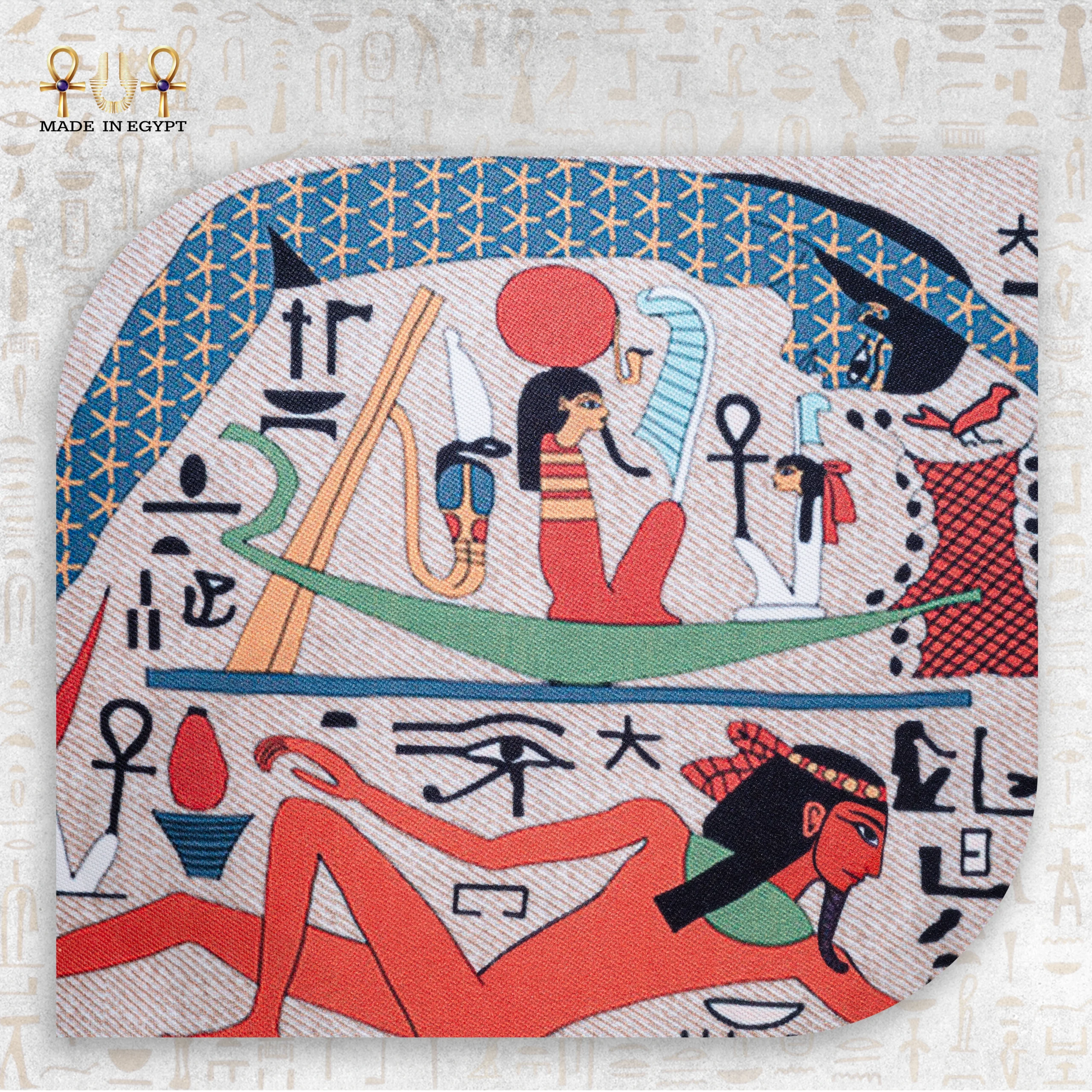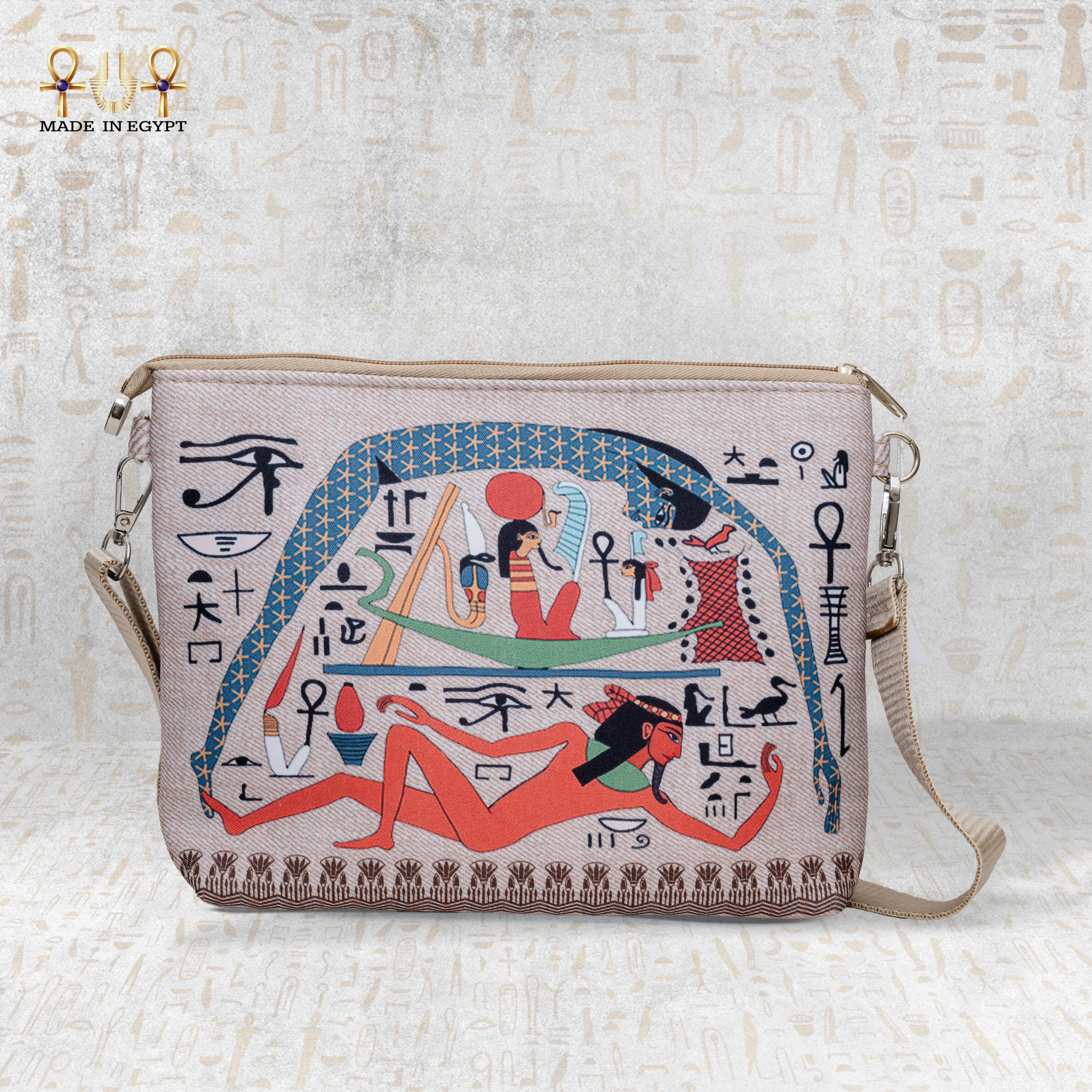 This tote turns ancient storytelling into wearable art. The vibrant mix of royal blue, earthy red, and golden beige reflects the colors of Egyptian royalty and sacred temples. These tones instantly elevate your outfit with a bold yet timeless look. Whether you’re headed to work, traveling, or running errands, this bag helps you carry a piece of history with you.