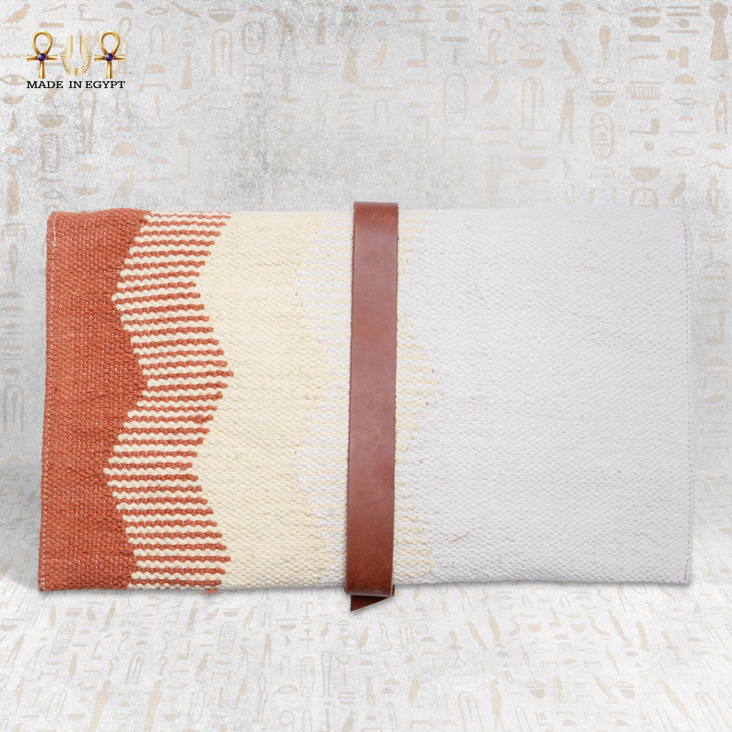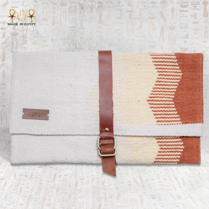 The Sand & Leather Harmony Clutch by KUFUF captures the spirit of balance found in Egypt’s natural landscape. It unites the softness of woven cotton with the resilience of genuine leather, creating a timeless piece that embodies both grace and strength. Inspired by the colors of golden dunes and desert clay, this clutch reflects harmony between nature and craftsmanship.
