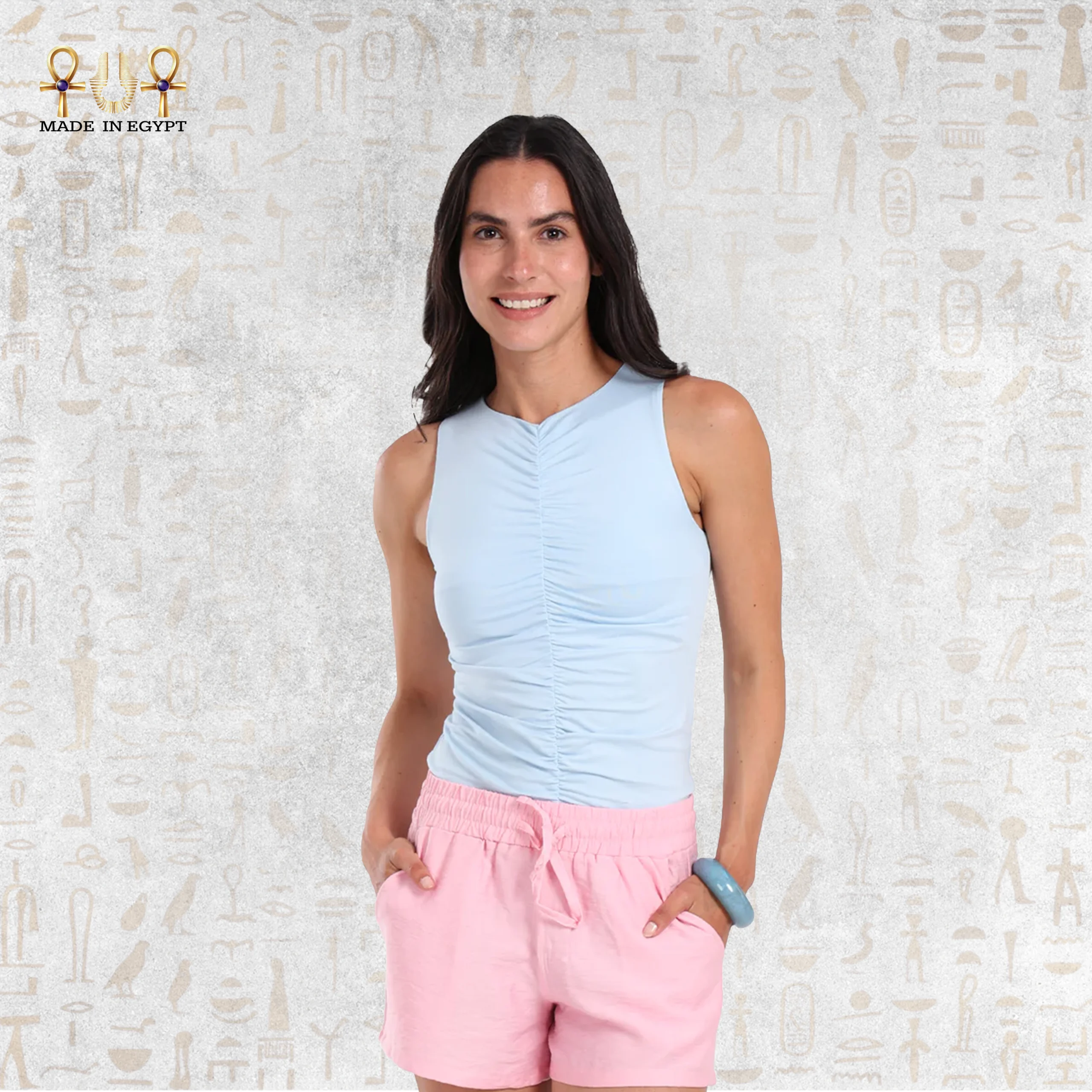 The Simply Ruched Top is designed for women who seek style and comfort in one refined piece. Its sleeveless design and front ruching create a soft, flattering shape that gives you confidence all day. Crafted from premium Tencel fabric, it feels silky, light, and breathable against the skin — perfect for warm days or layered outfits.